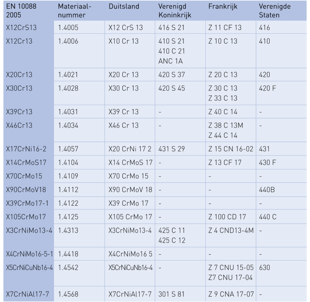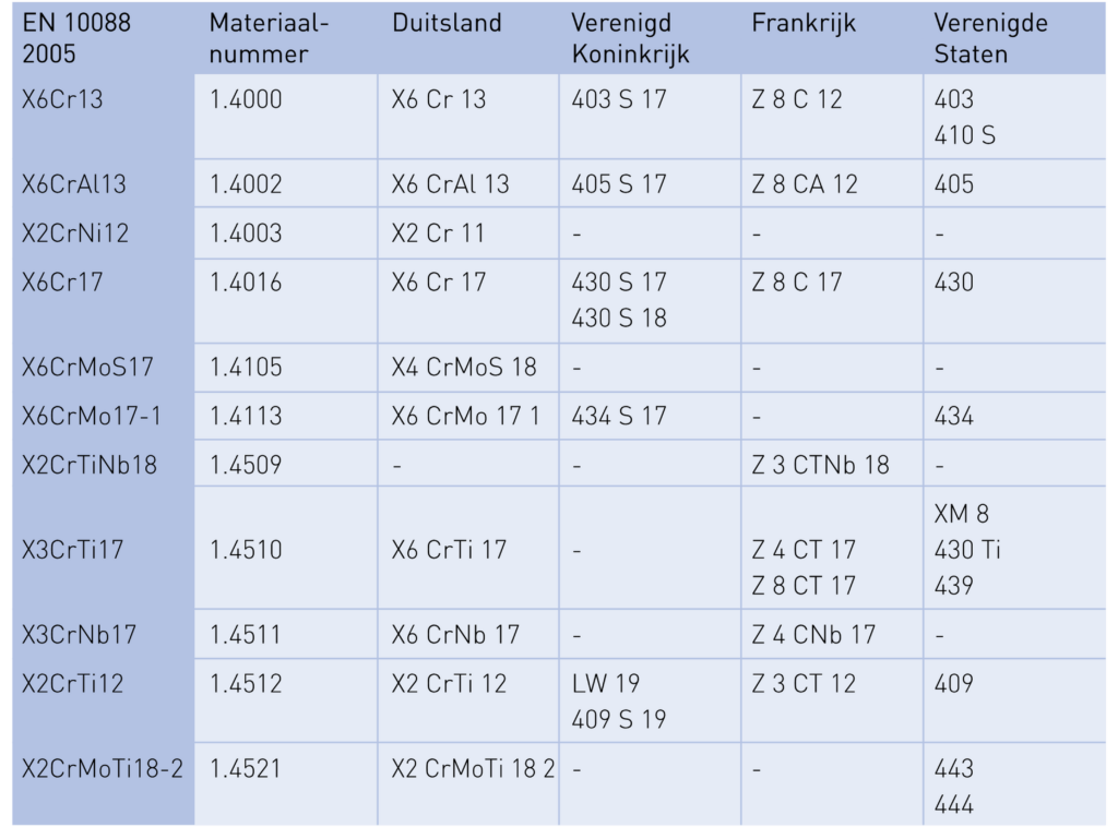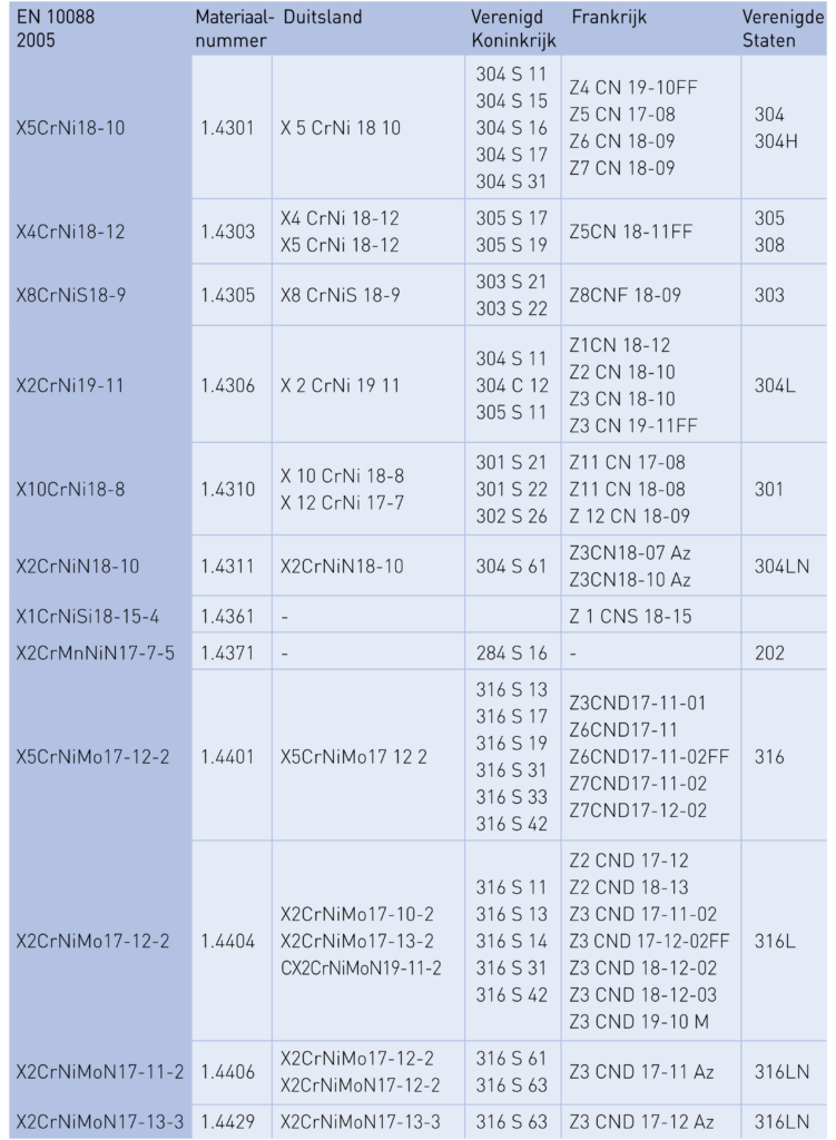 ‘Corrosievaste staalsoorten. Deel 1: Lijst van corrosievaste staalsoorten’