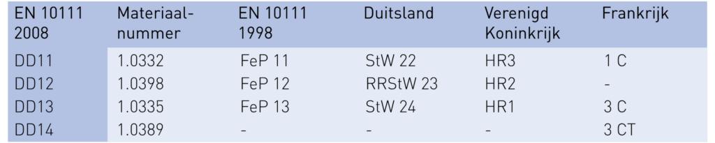 | +Cxxx | voor koud nagewalst. Op de plaats van de xxx komt de minimale treksterkte in N/mm² te staan. |