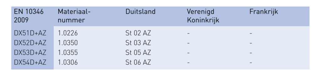 | +AZ | voor de aluminium/zink legeringslaag met ca. 55 % aluminium |