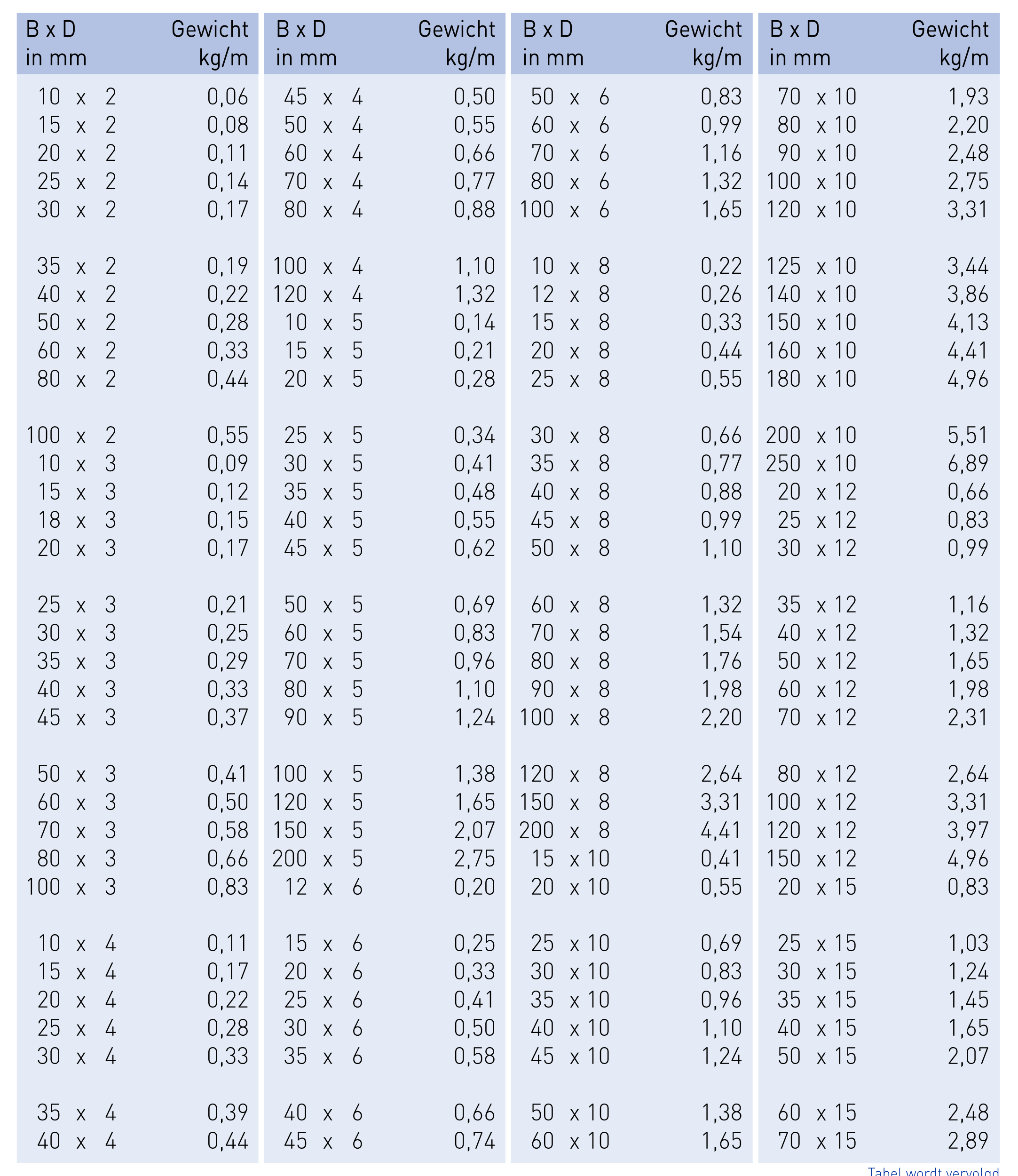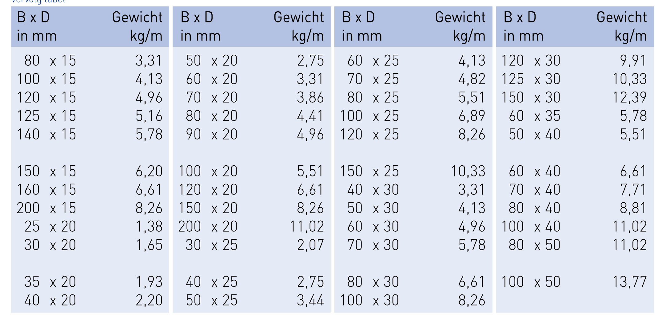 Gebruikelijke voorraadsafmetingen. Andere afmetingen en/of kwaliteiten op aanvraag.