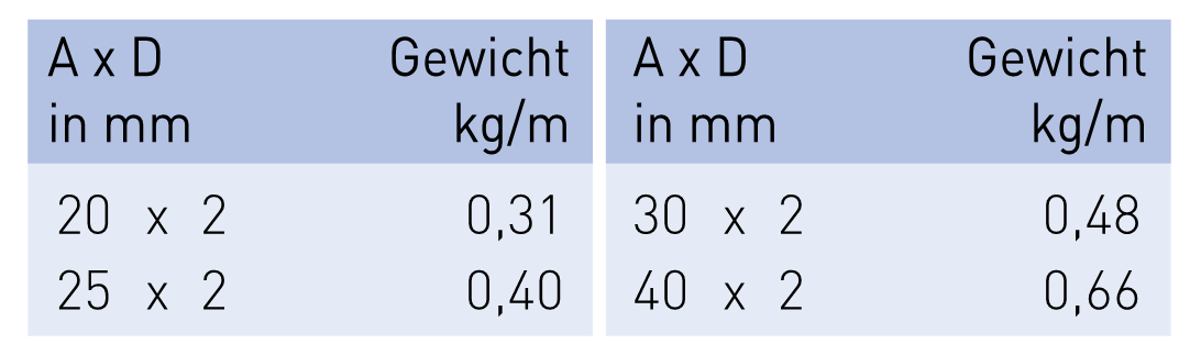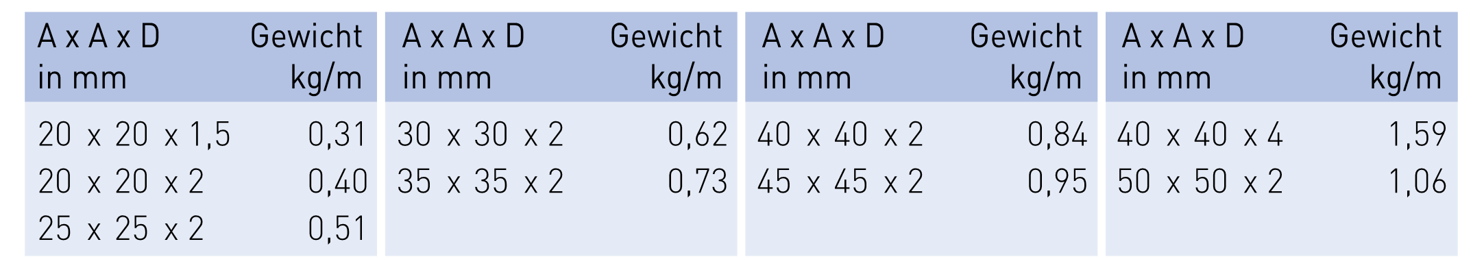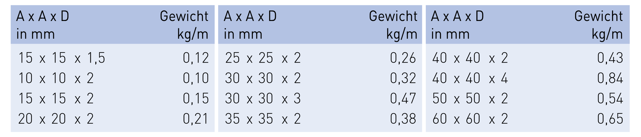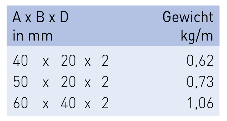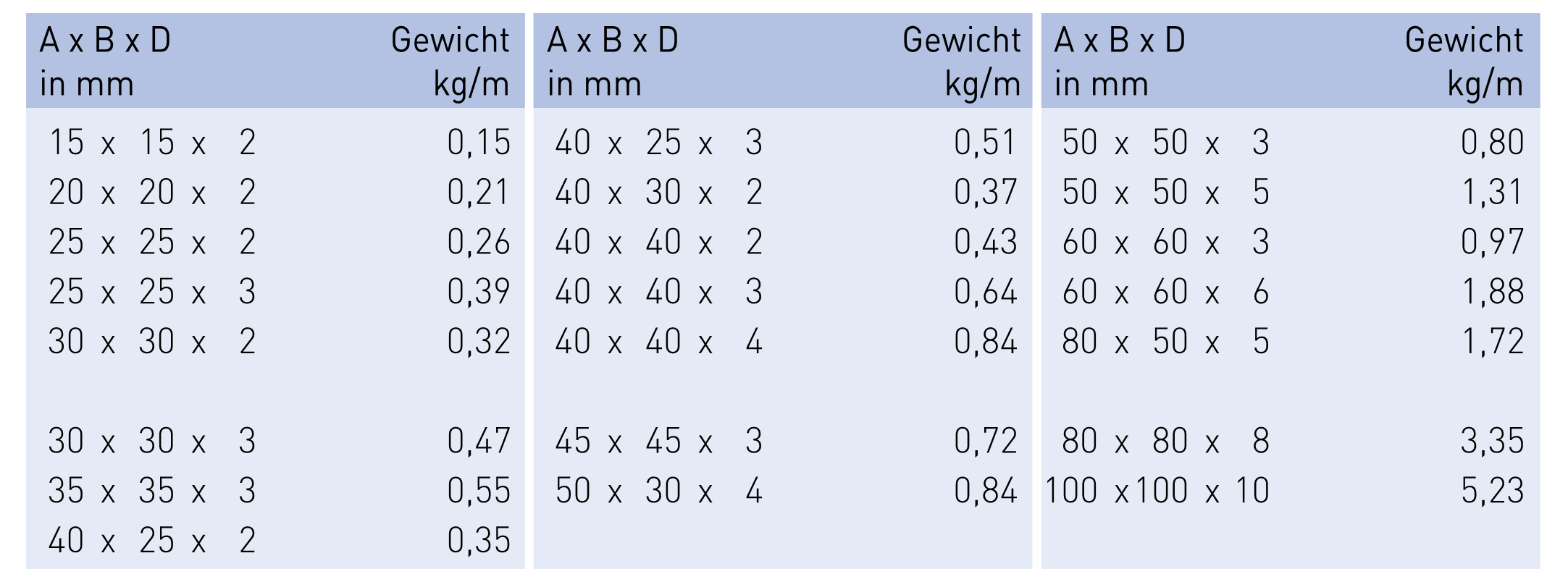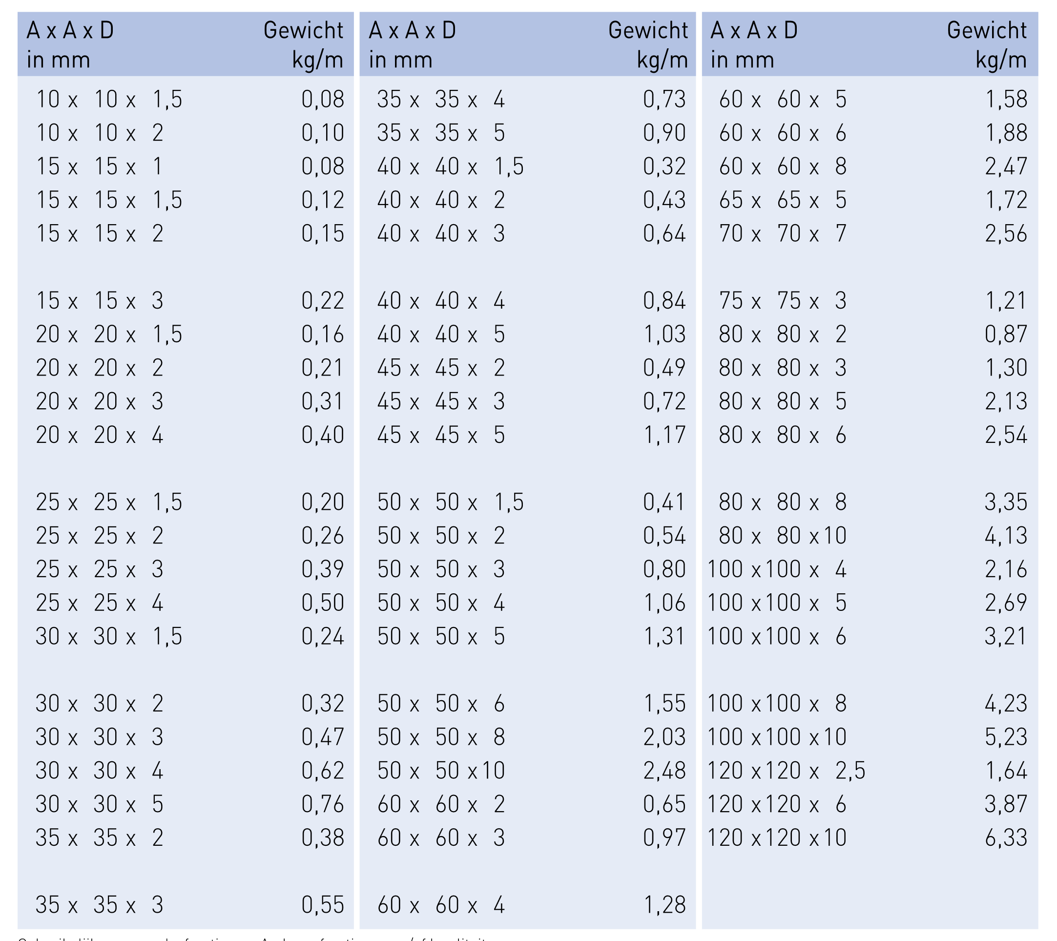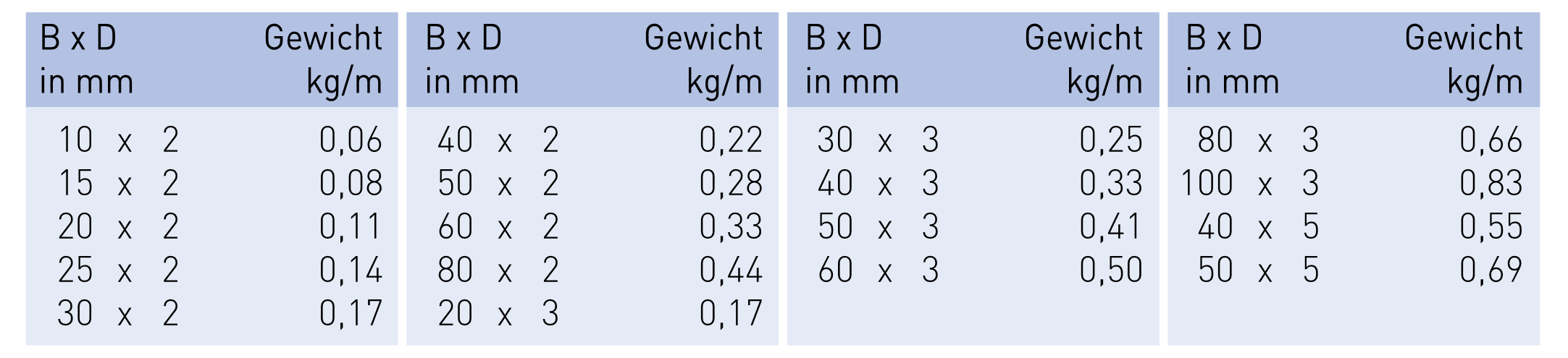 Gebruikelijke voorraadsafmetingen. Andere afmetingen en/of kwaliteiten op aanvraag. * ri = 1 mm / ru = 3 mm ** ri = 0,5 mm / ru = 2 mm *** ru = 3 mm ri = inwendige straal / ru = uitwendige straal