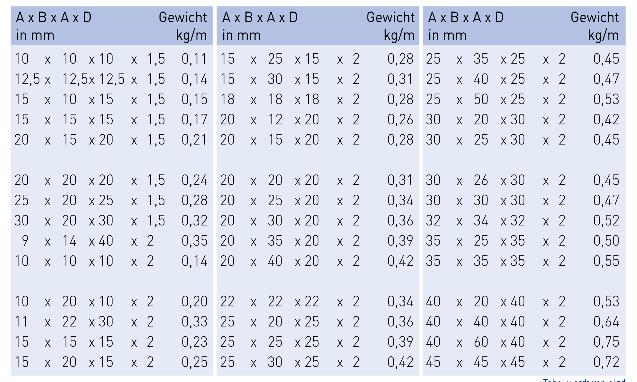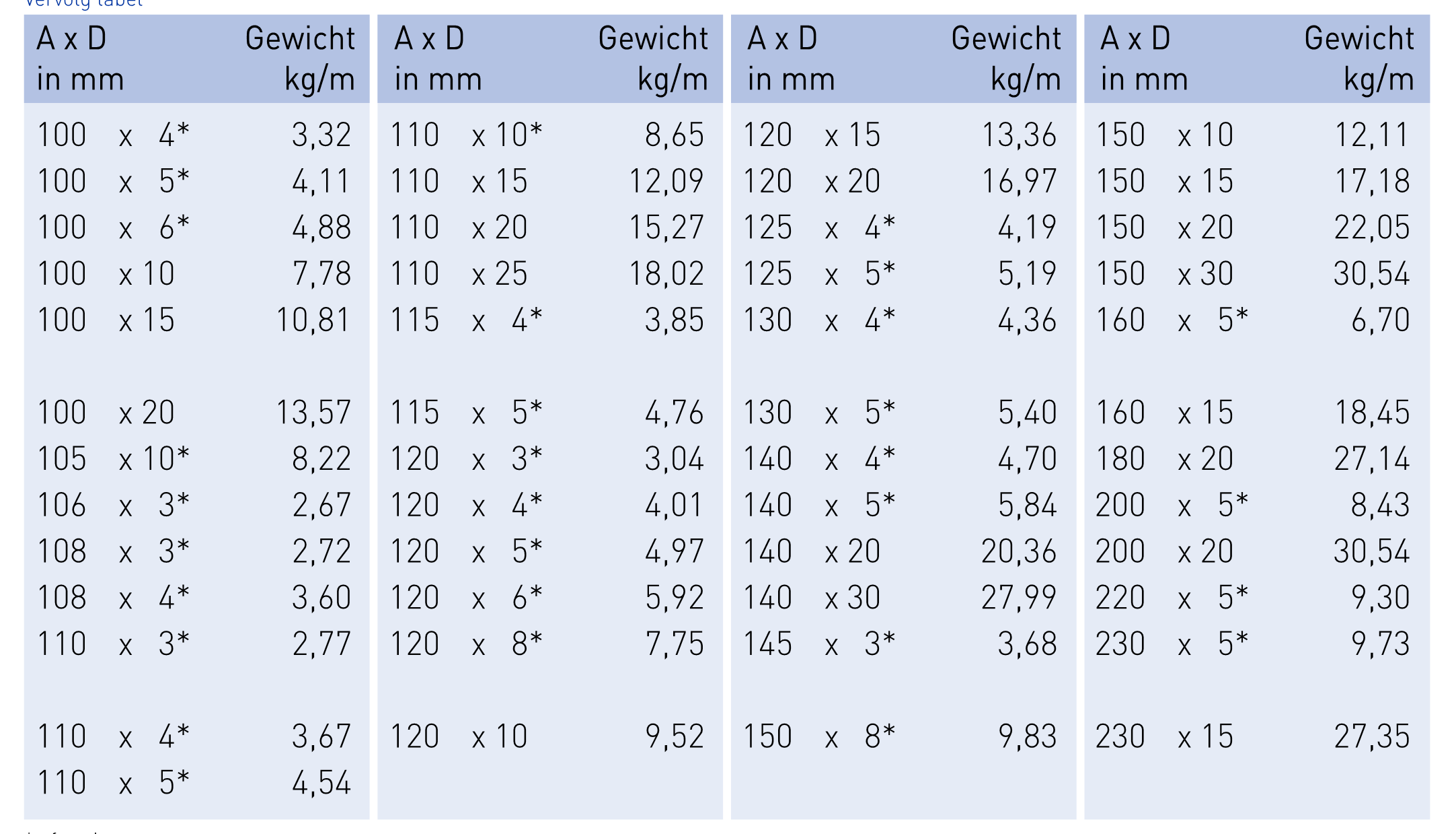 - De technische gegevens staan in tabel 1 en in tabel 3 (geëxtrudeerd) op pagina 582 en 588.