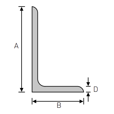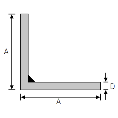 Gelijkzijdige hoekprofielen, warmgewalst, finish 1D