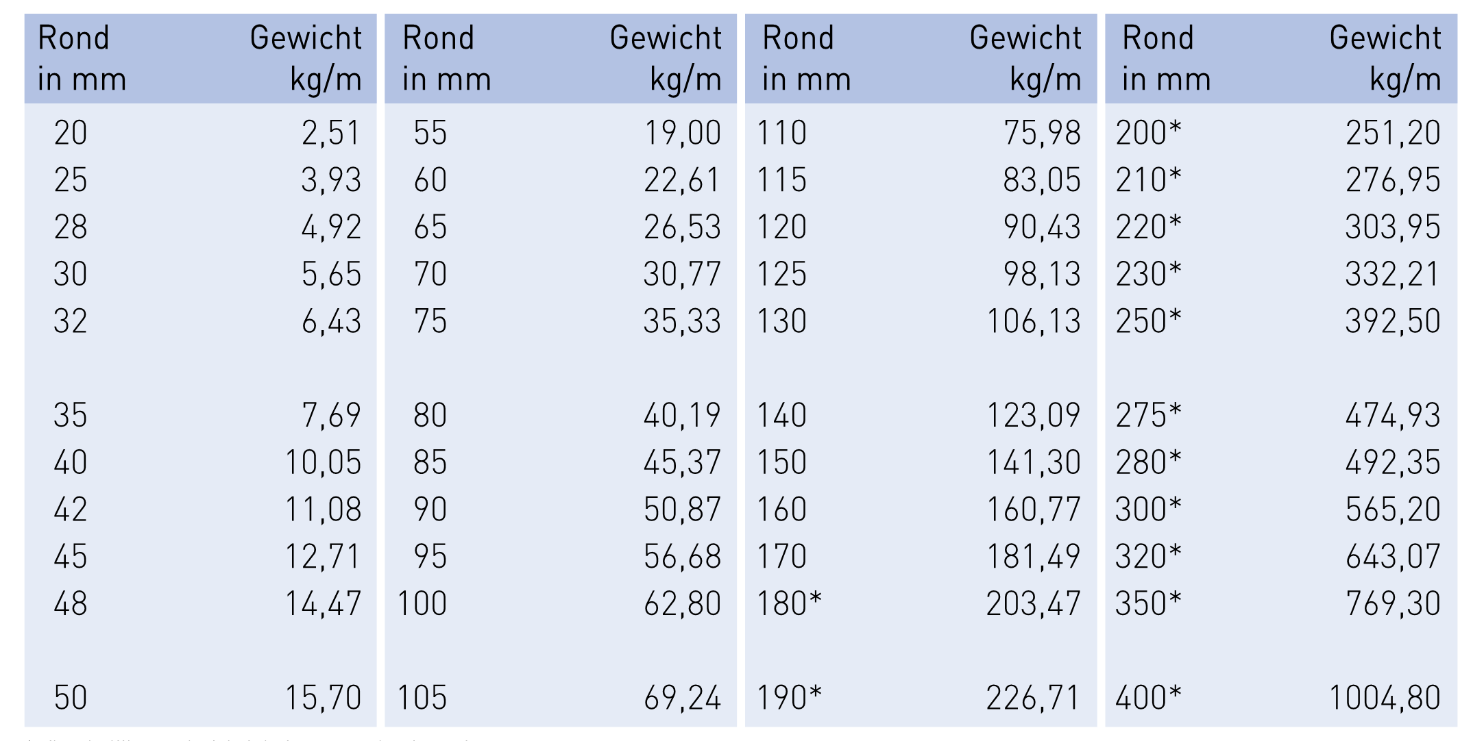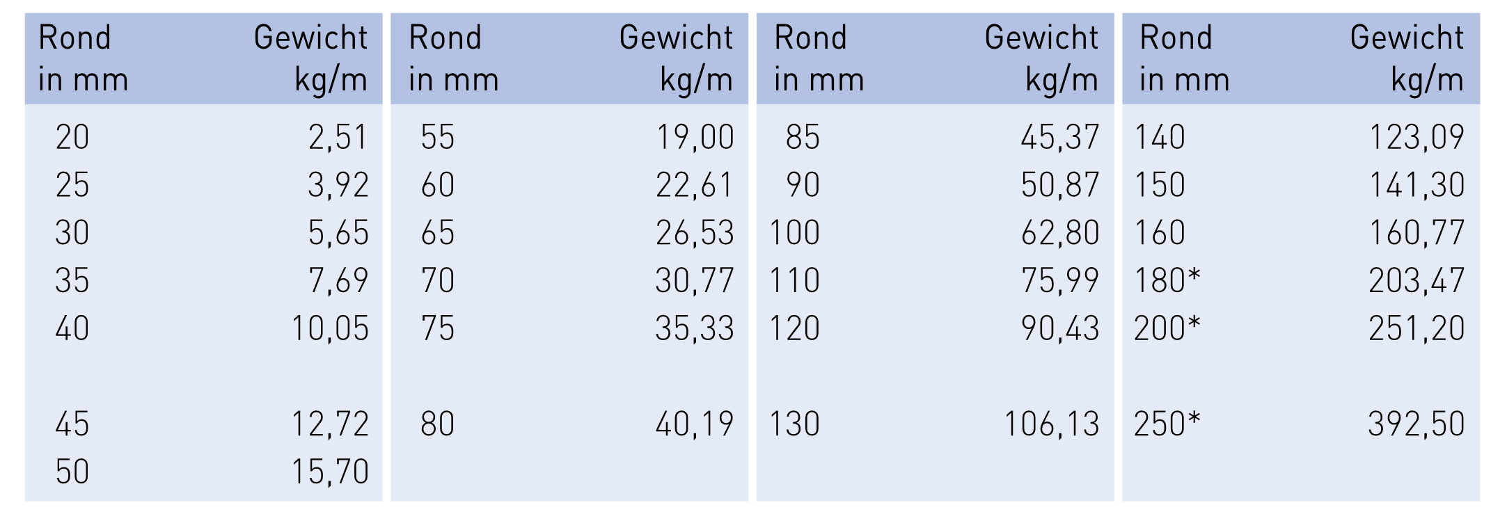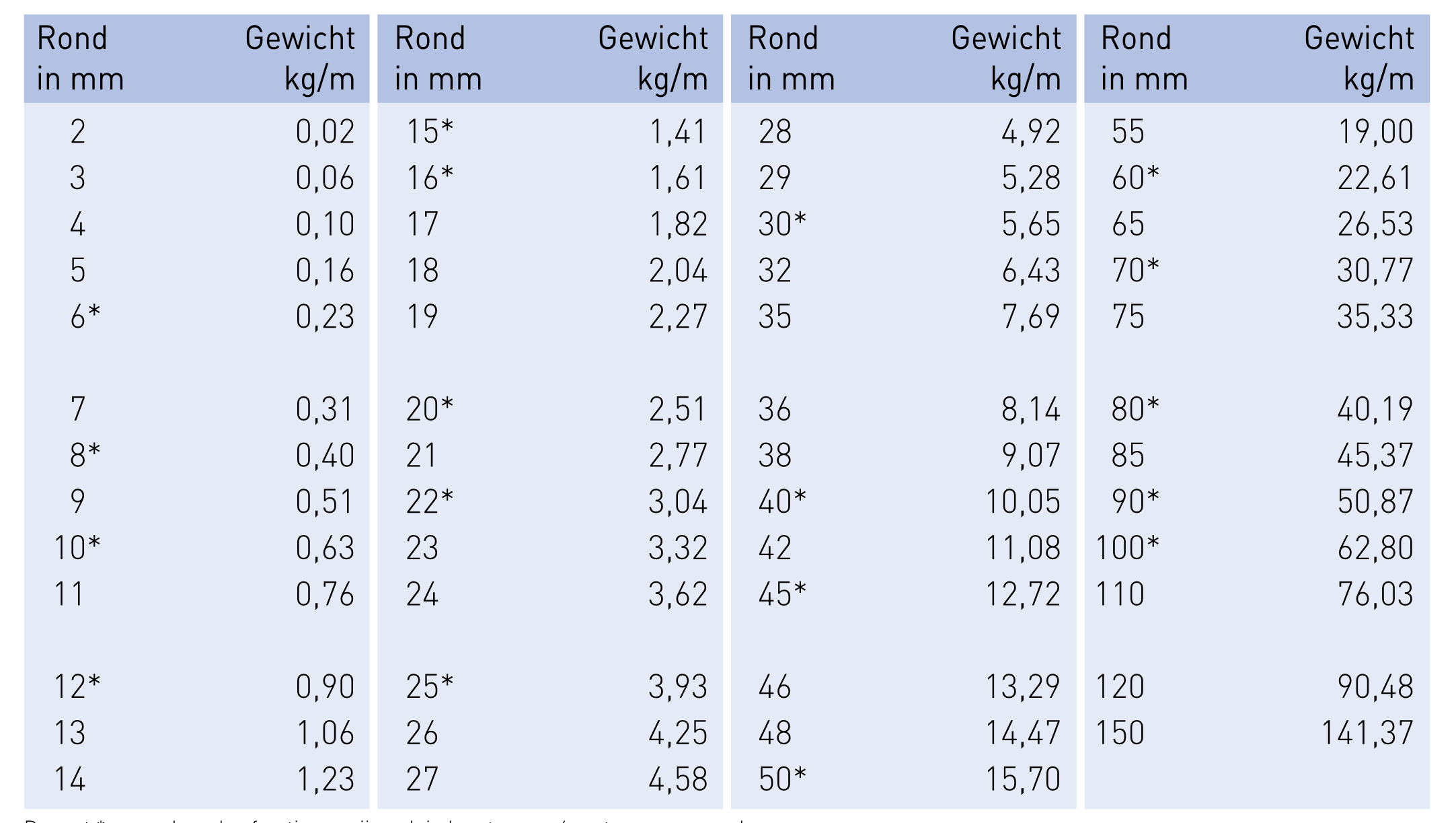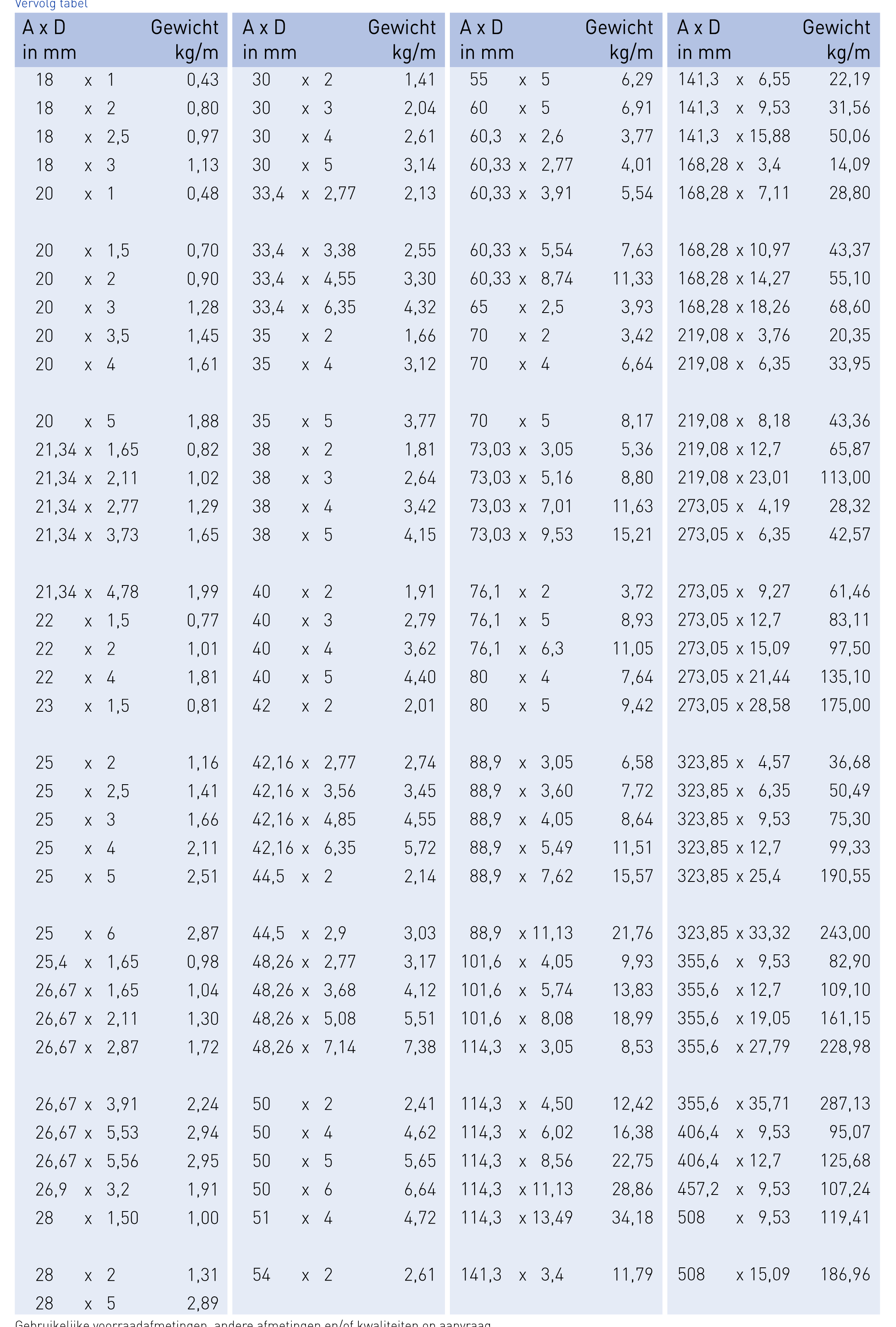- Grotere afmetingen zijn uit voorraad beschikbaar in kwaliteit 1.4571.