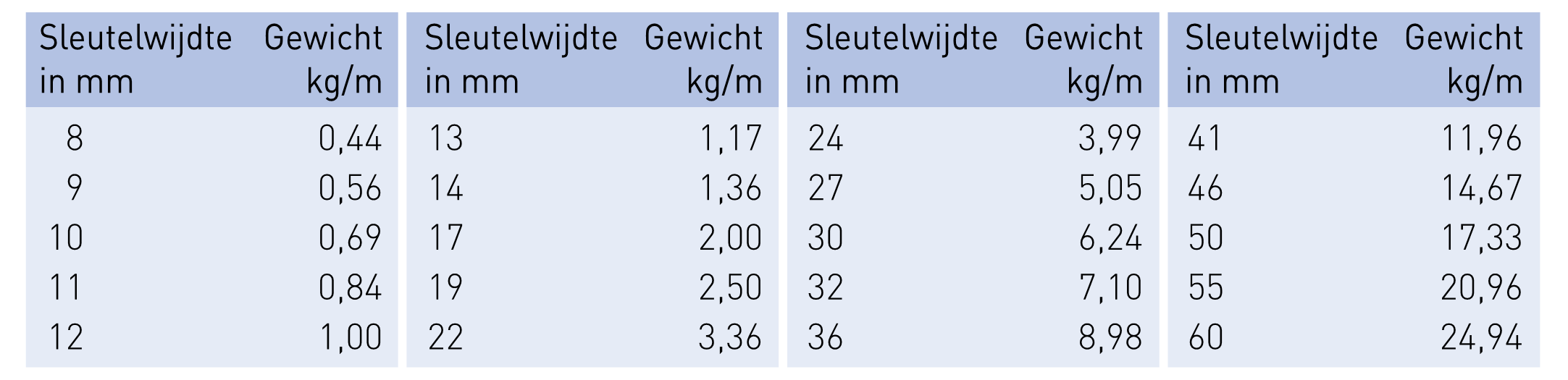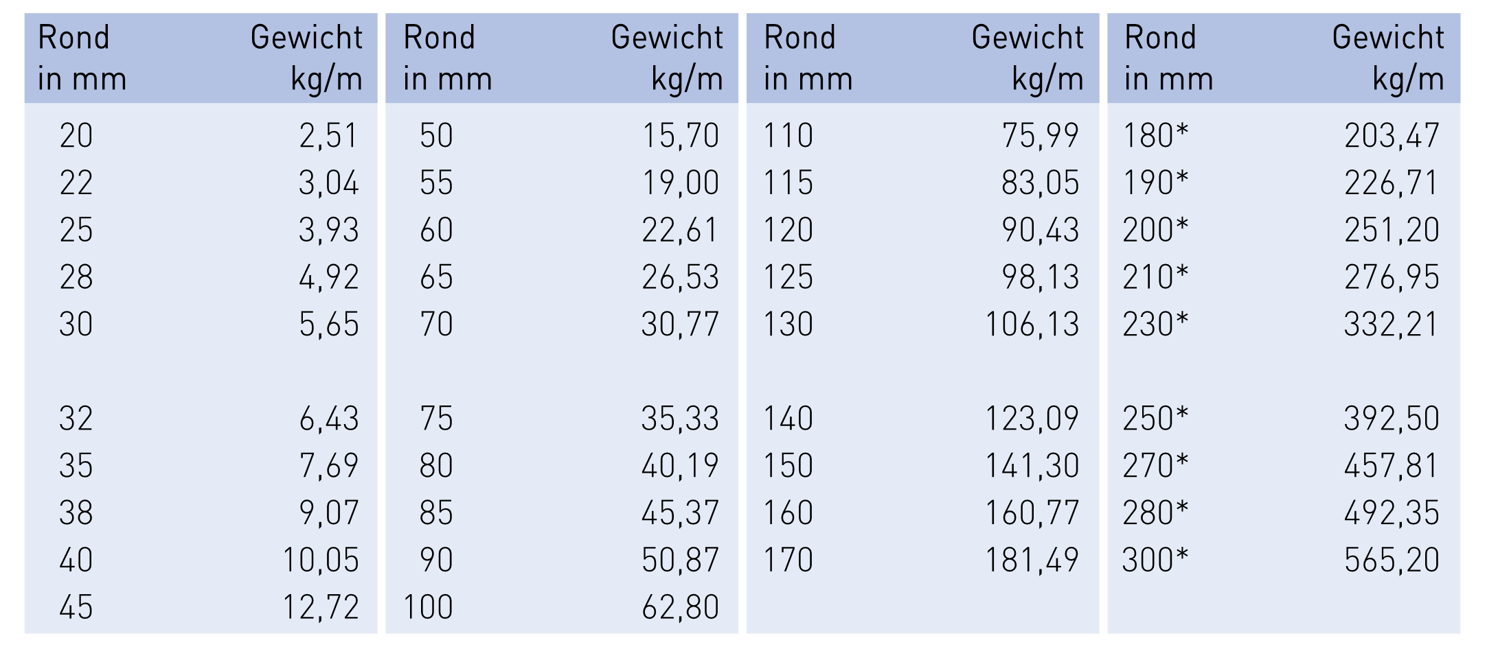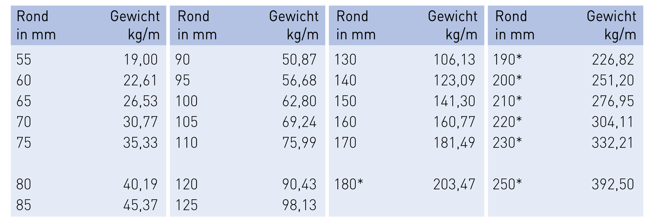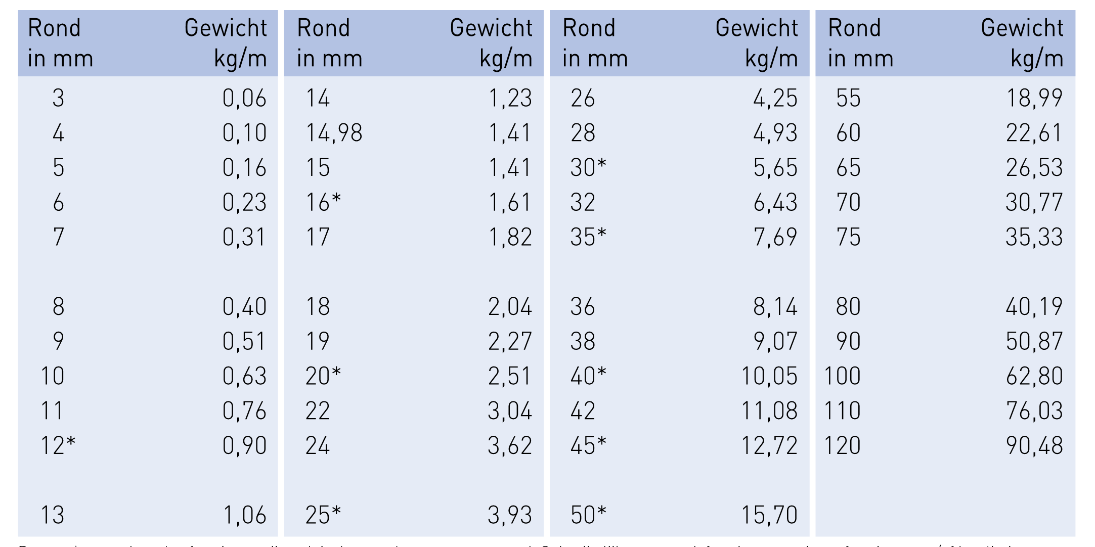 - Grotere afmetingen zijn uit voorraad beschikbaar in kwaliteit 1.4571.