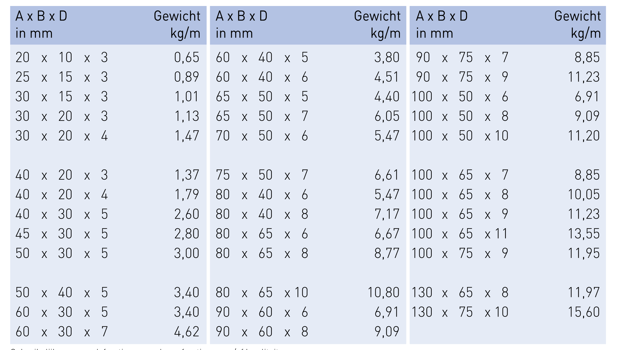 Ongelijkzijdige hoekprofielen, lasergelast, finish 1D