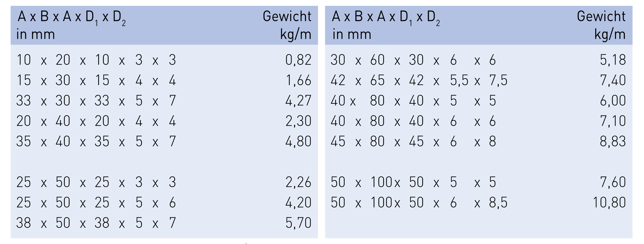 Gelijkzijdige hoekprofielen, blank, finish 2H