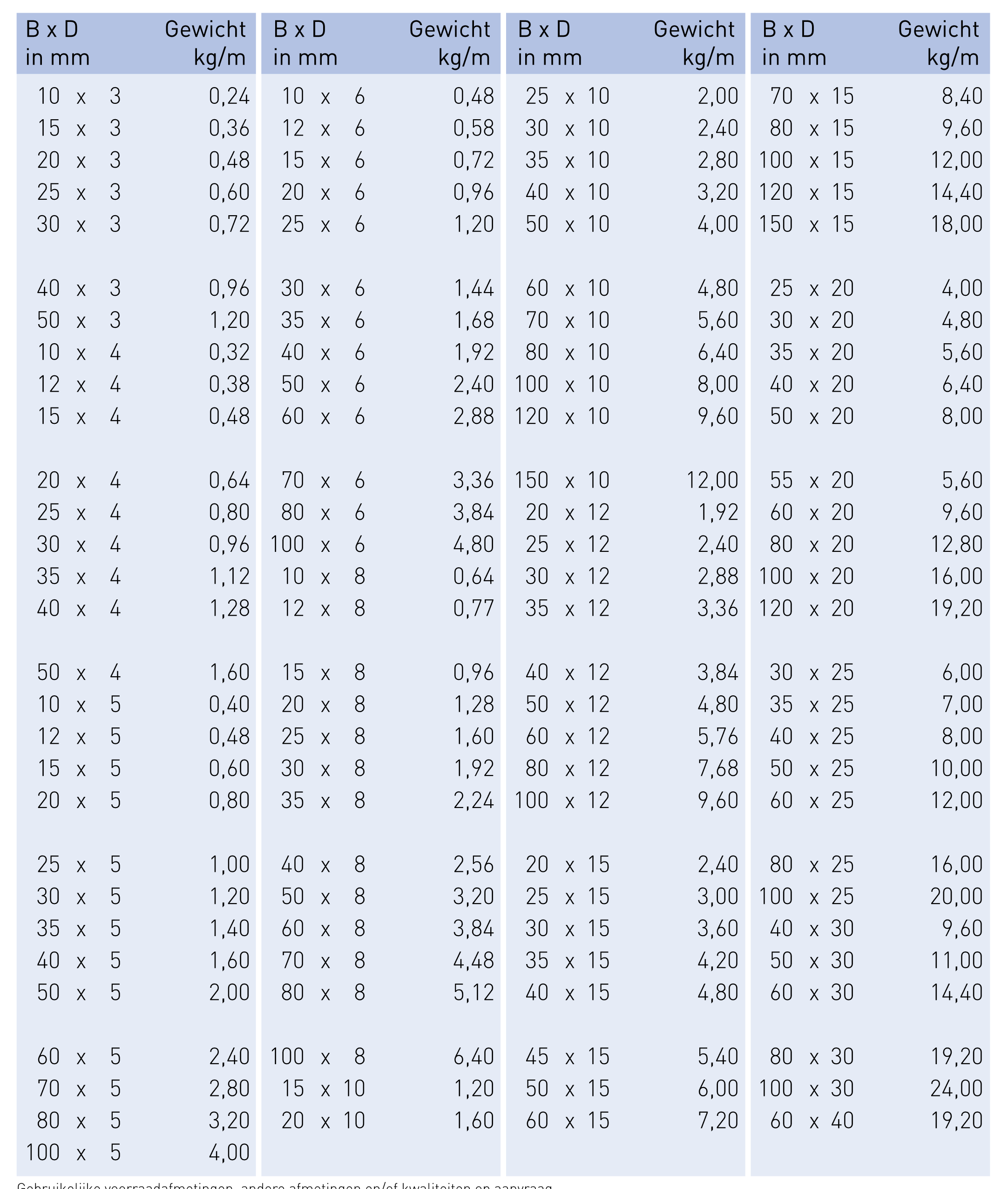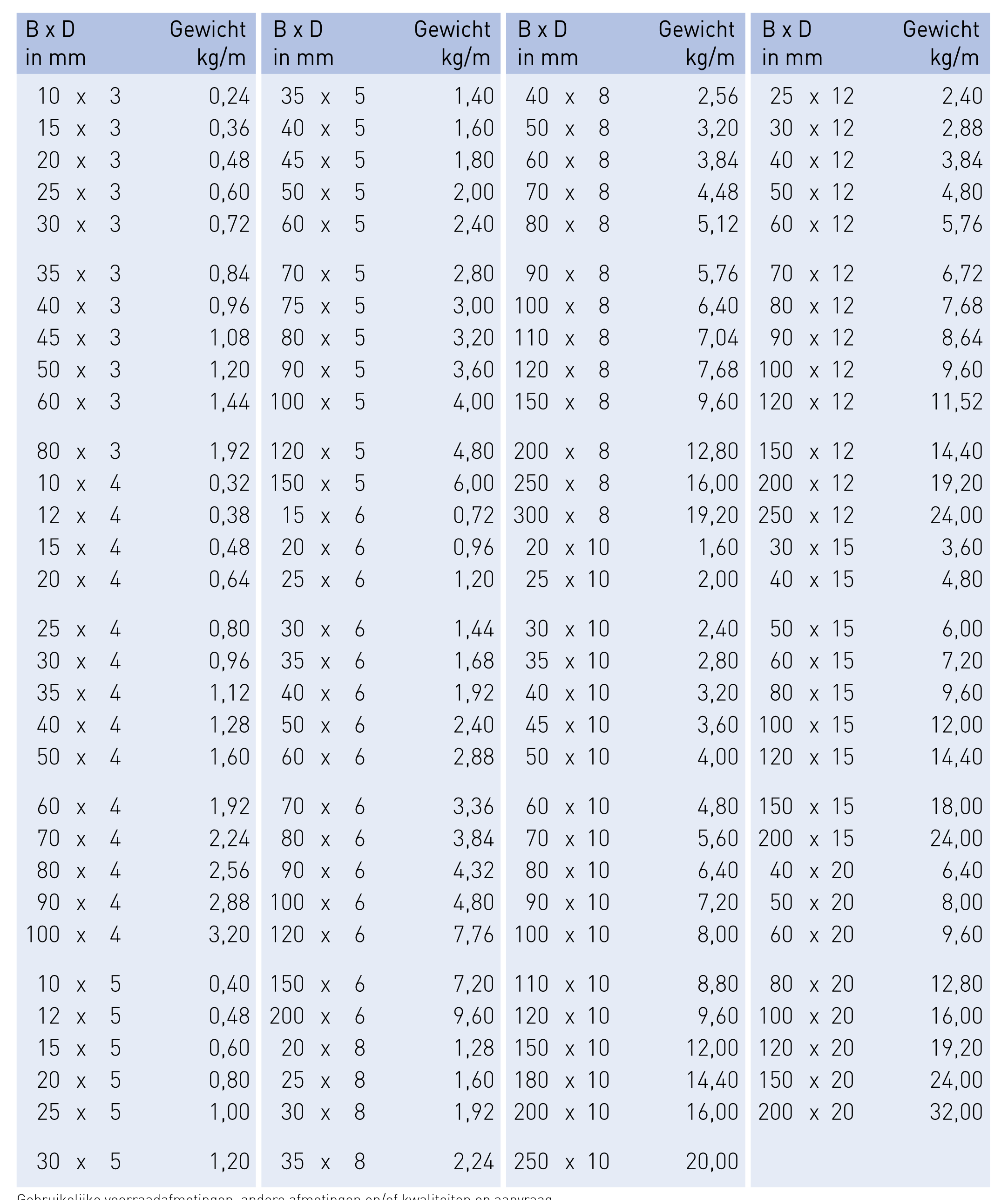 - Leverbare afmetingen: dikte 0,03 mm tot en met 3,00 mm breedte maximaal 310 mm