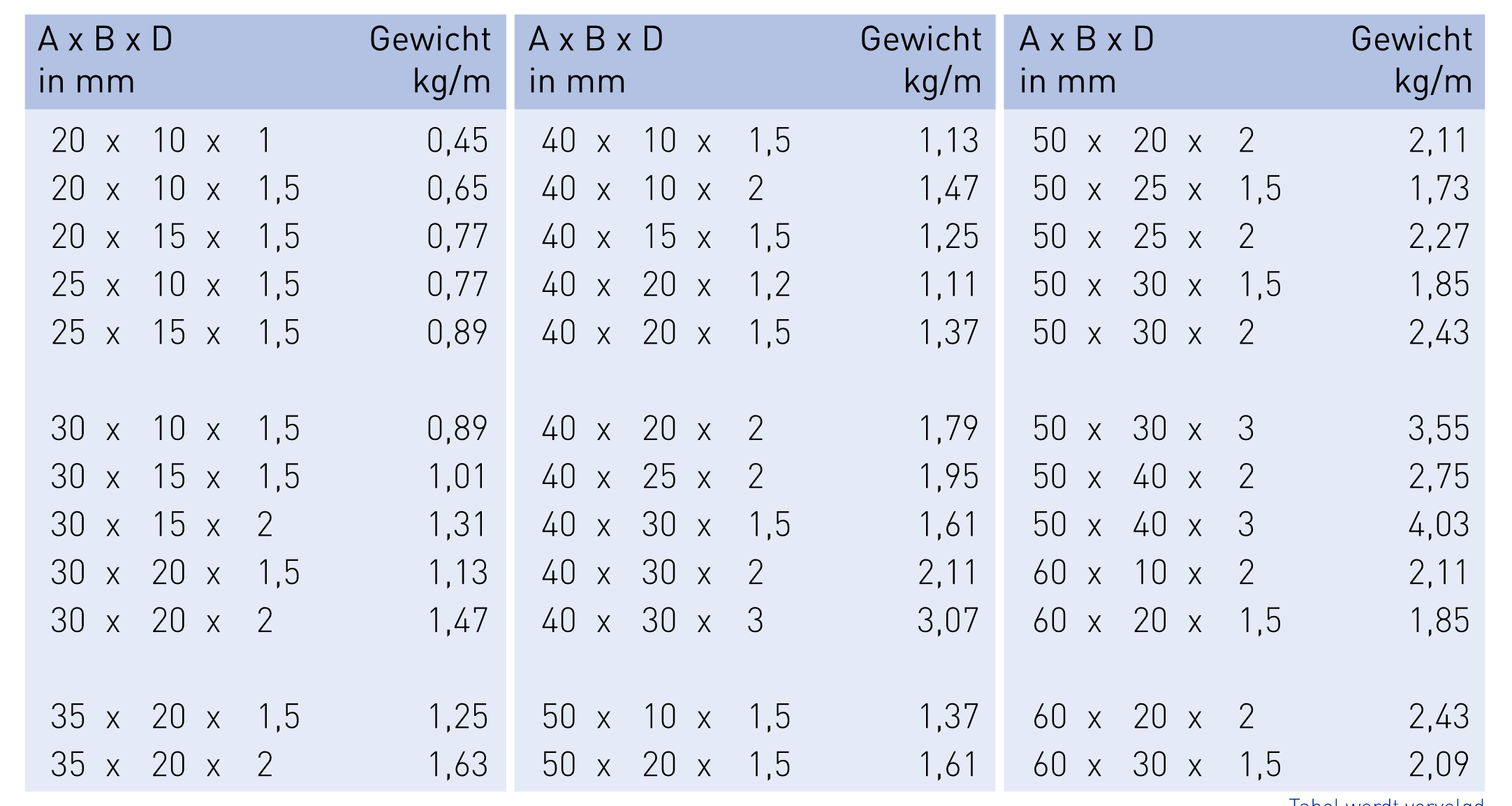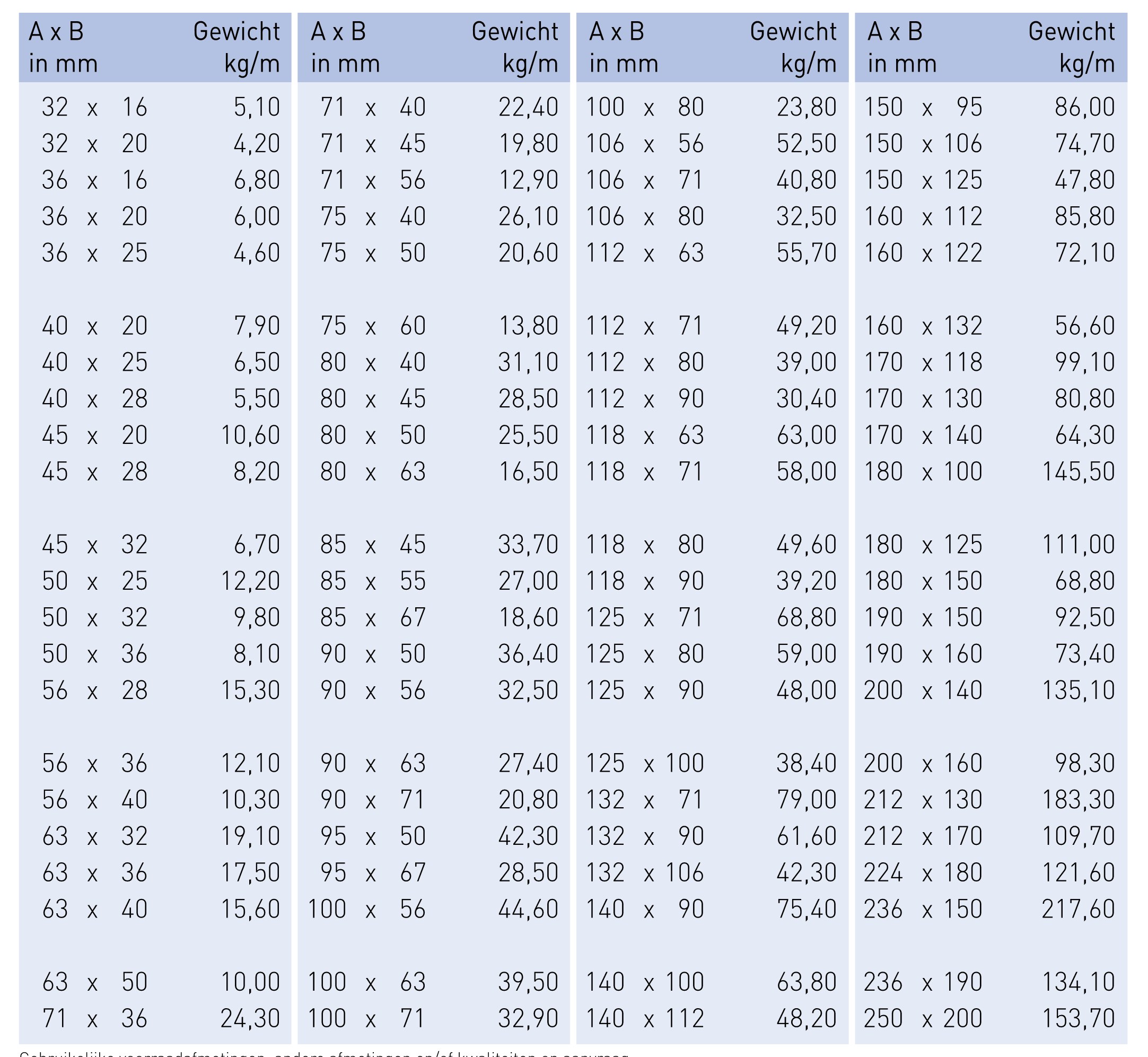 - Het grote voordeel van lasergelaste profielen is de vrijheid van vormgeven en diversiteit in afmetingen. Bij een redelijke hoeveelheid, vaak al vanaf 250 kg, kan er al worden afgeweken van de standaard afmetingen en kwaliteiten.