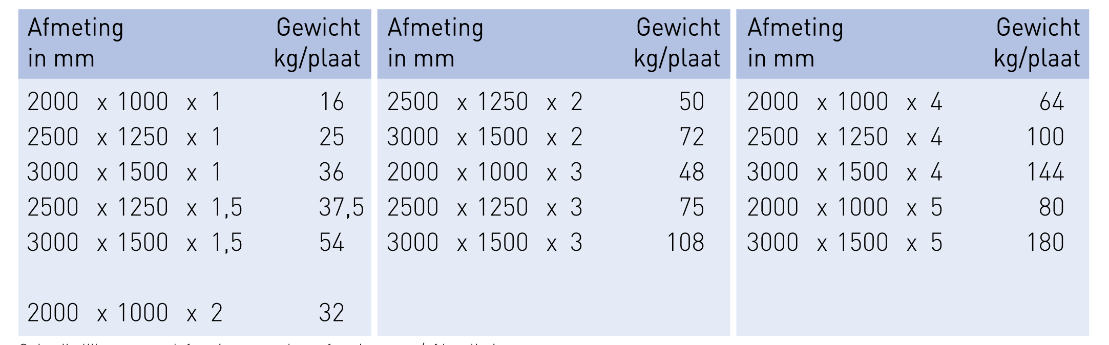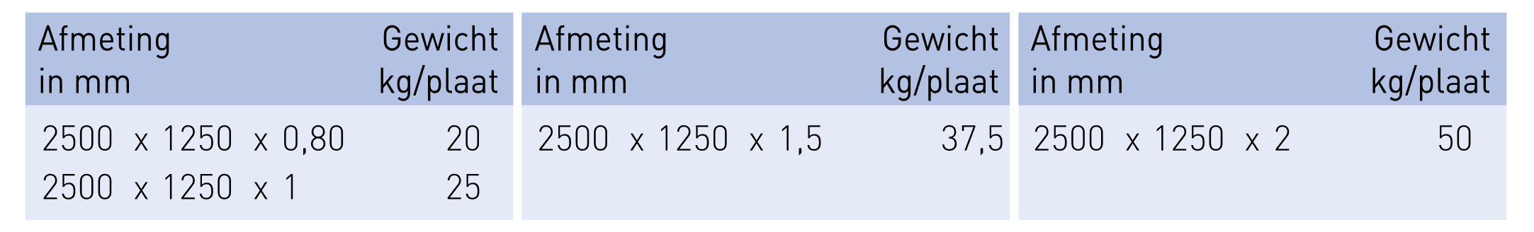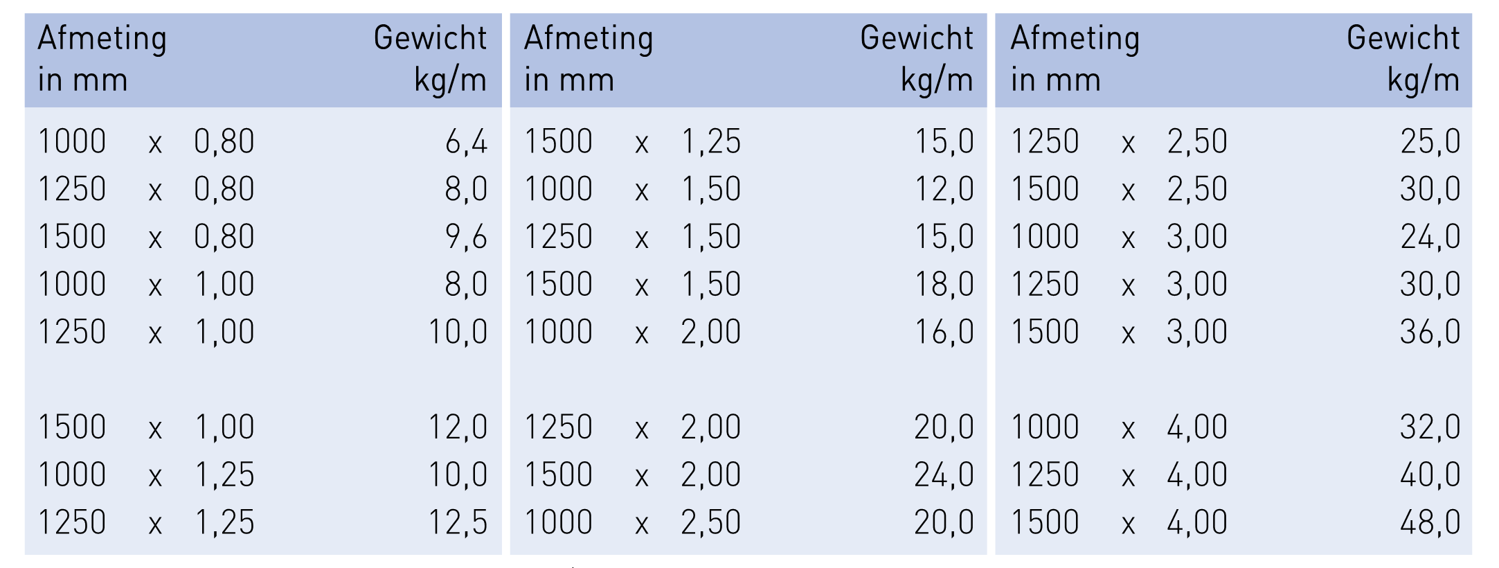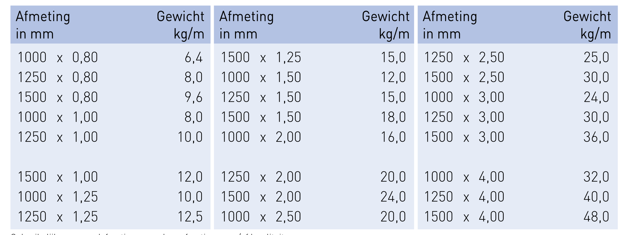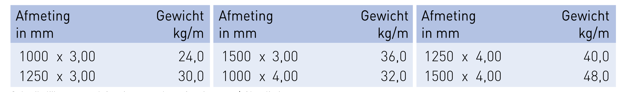 - – Platen – Af te rollen op gewenste lengte 400 – 6000 mm