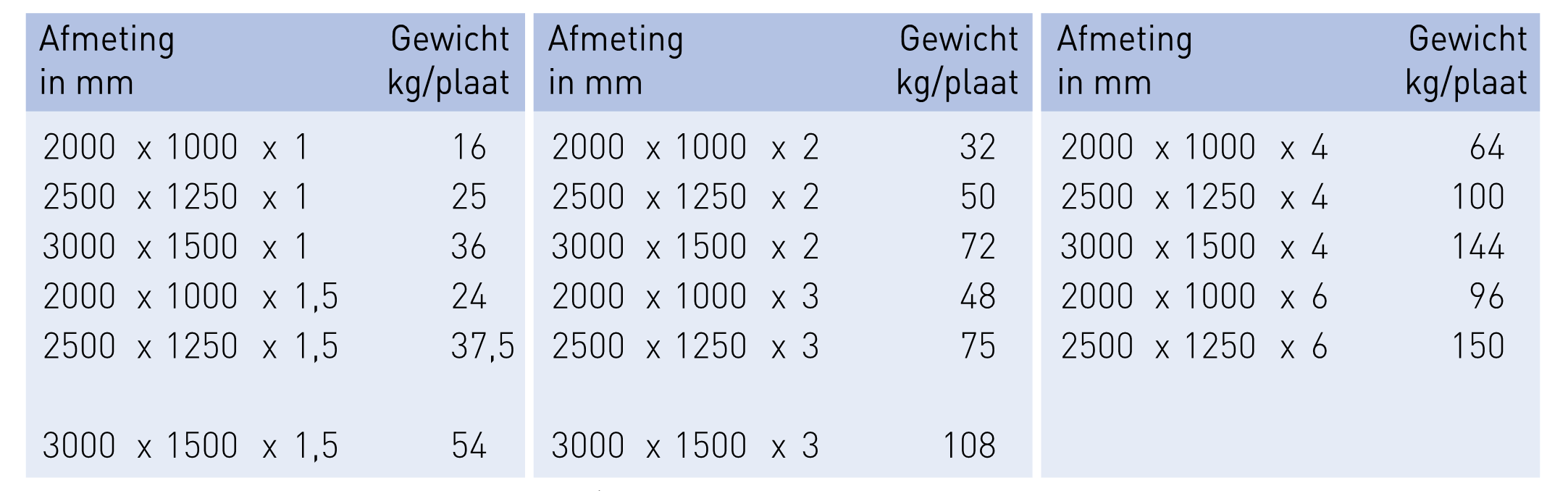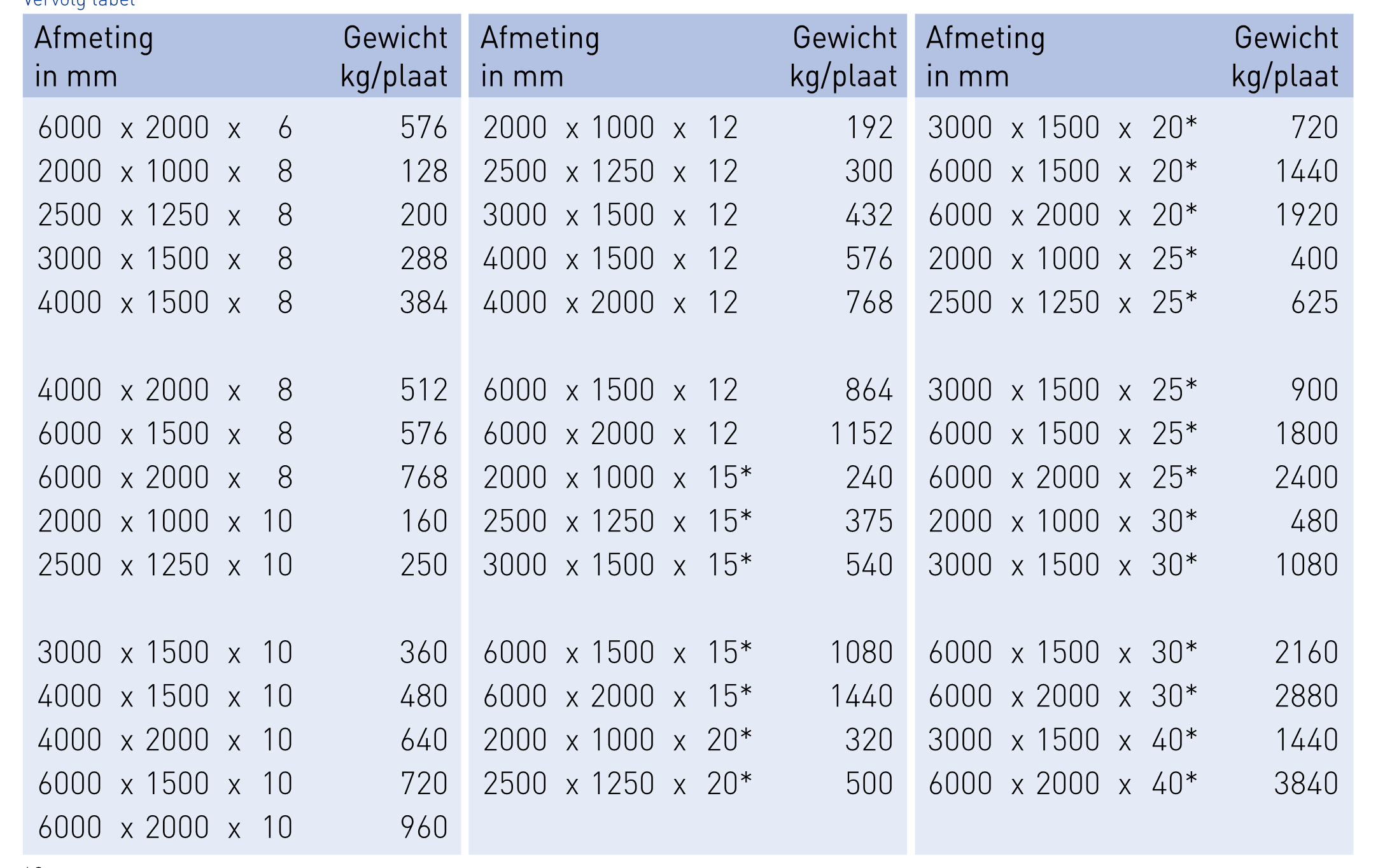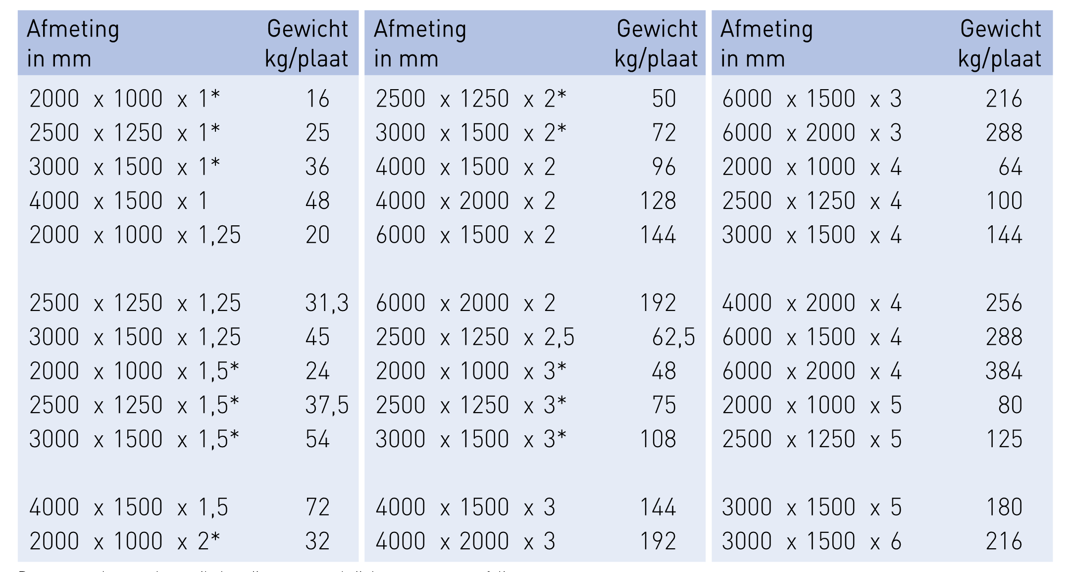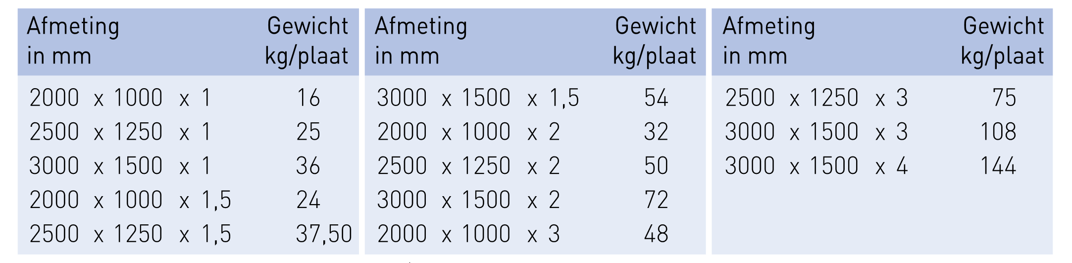 - In bijna alle gevallen zijn de platen tevens gecertificeerd als 1.4307.