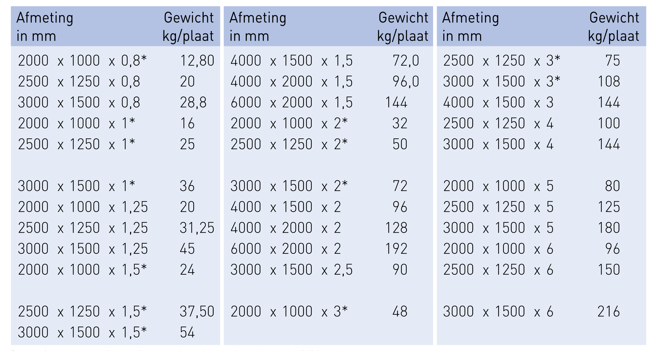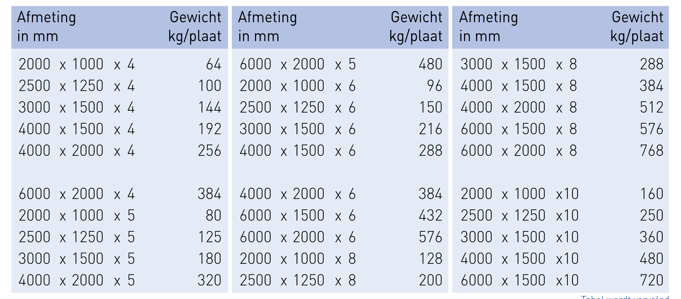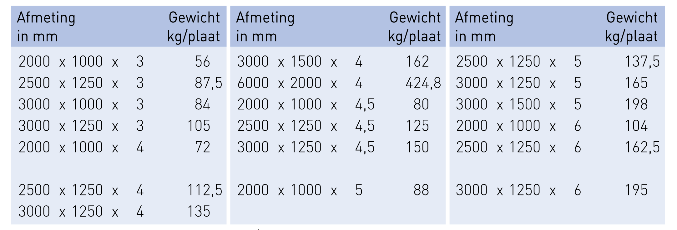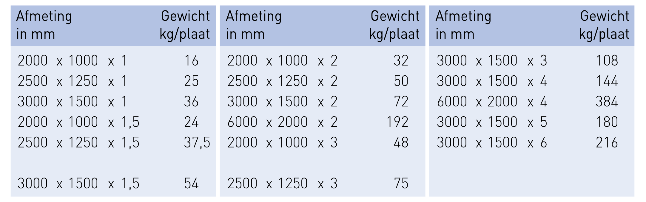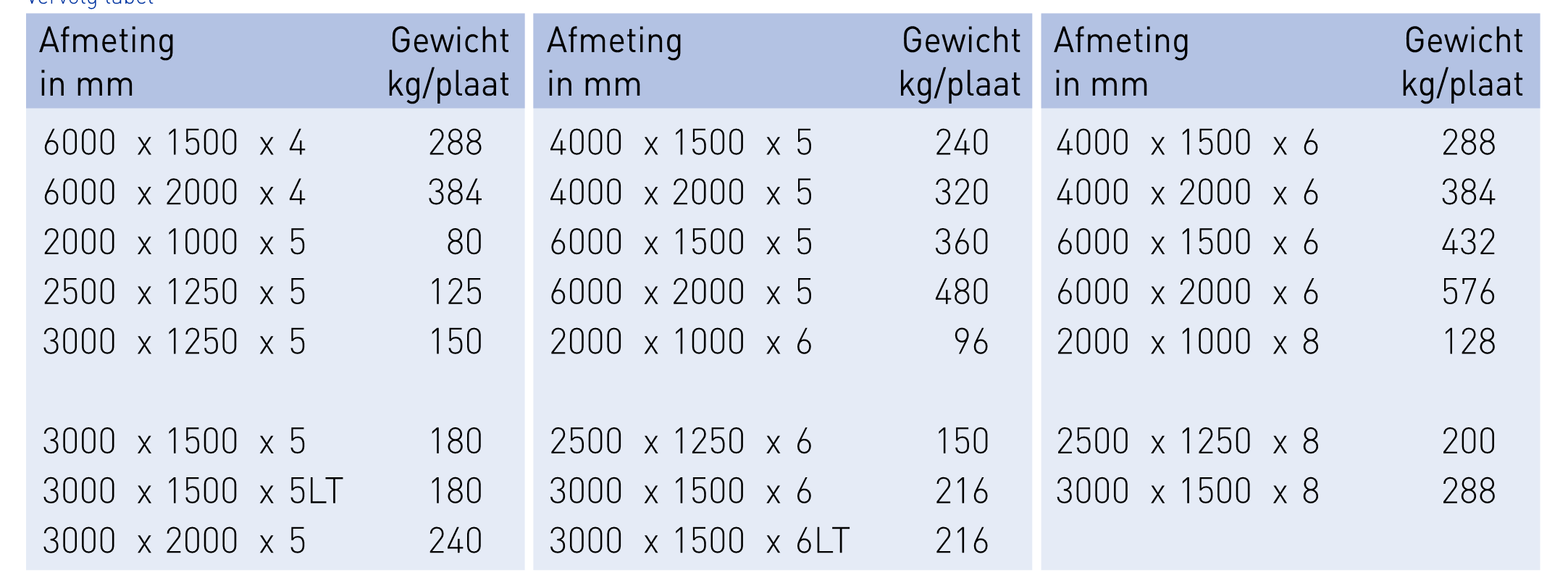 - In bijna alle gevallen zijn de platen tevens gecertificeerd als 1.4307.