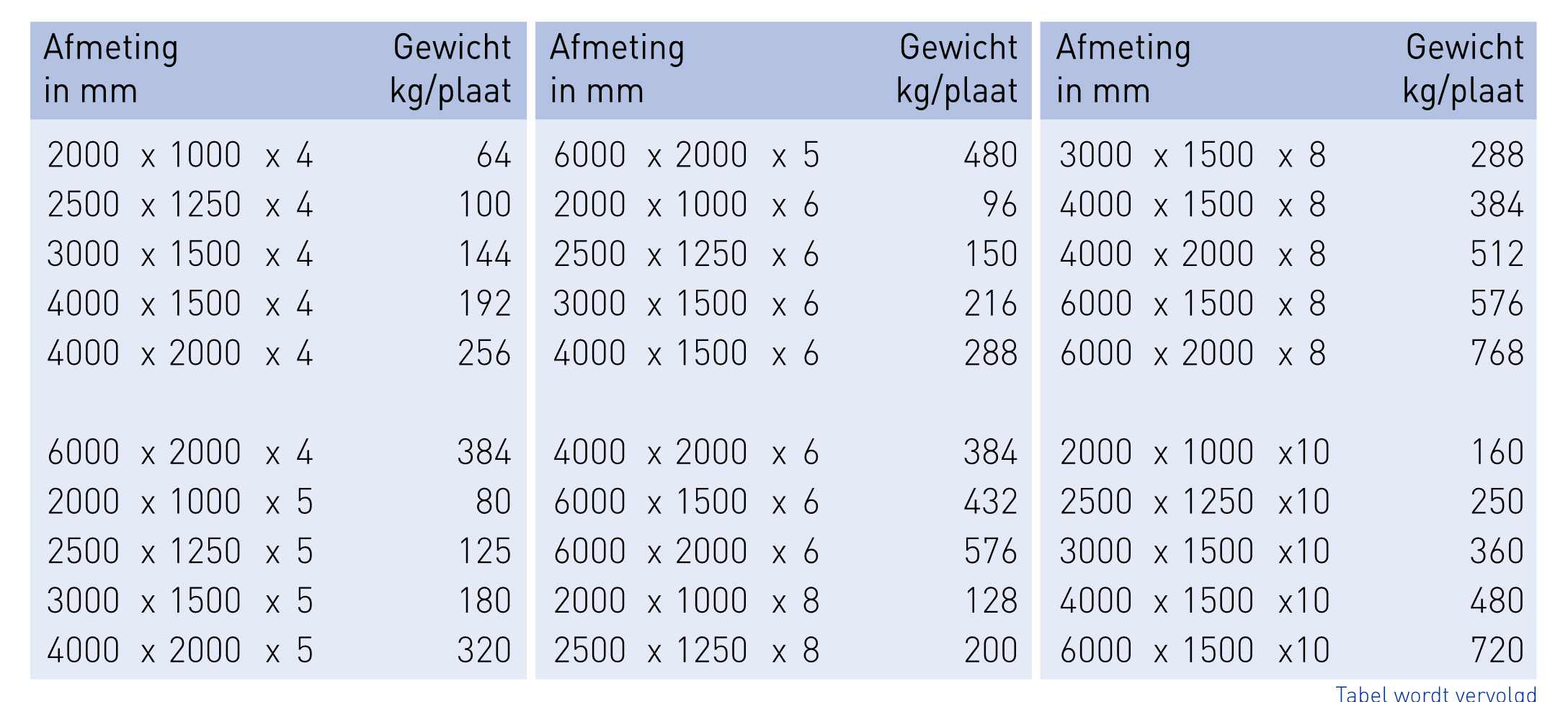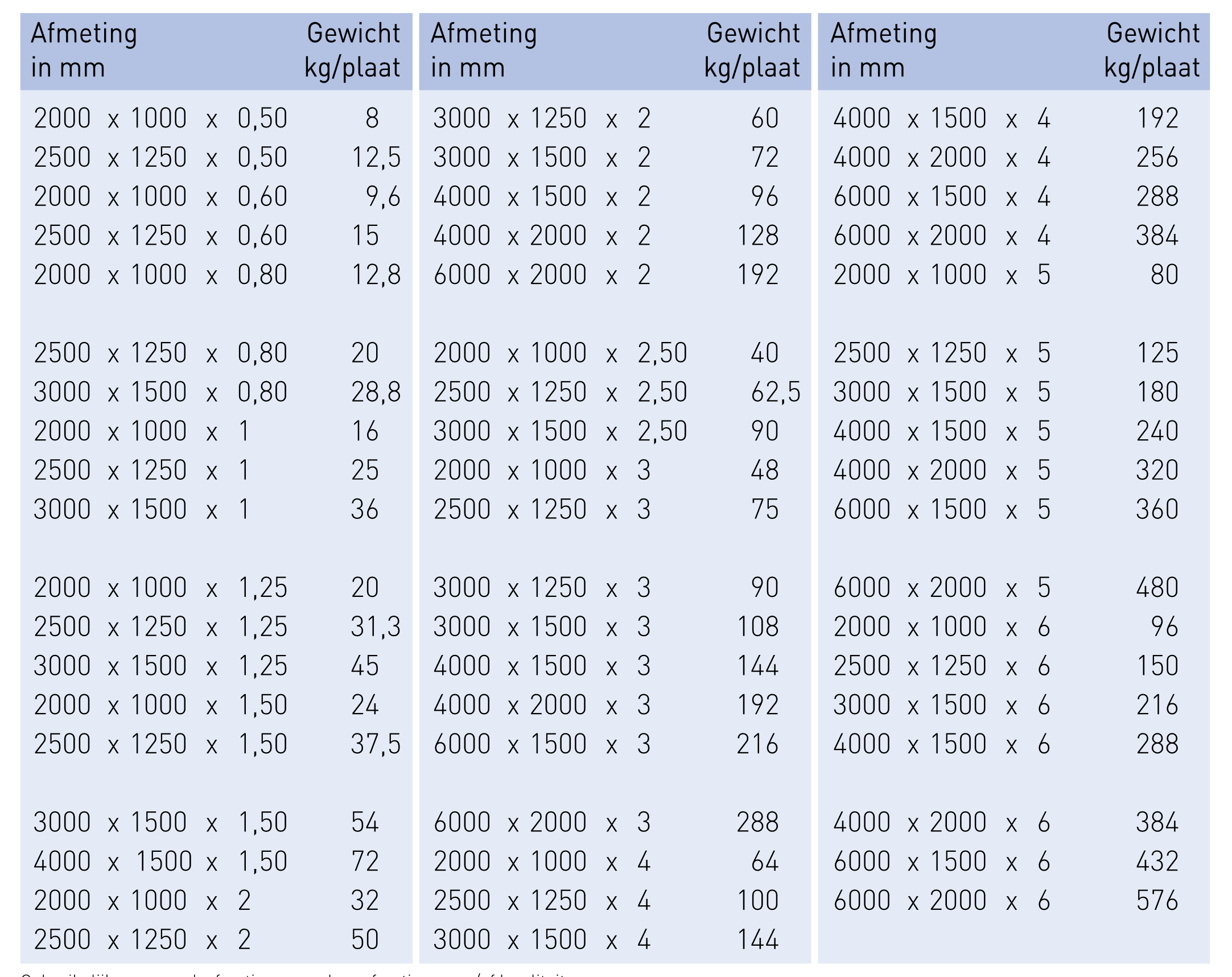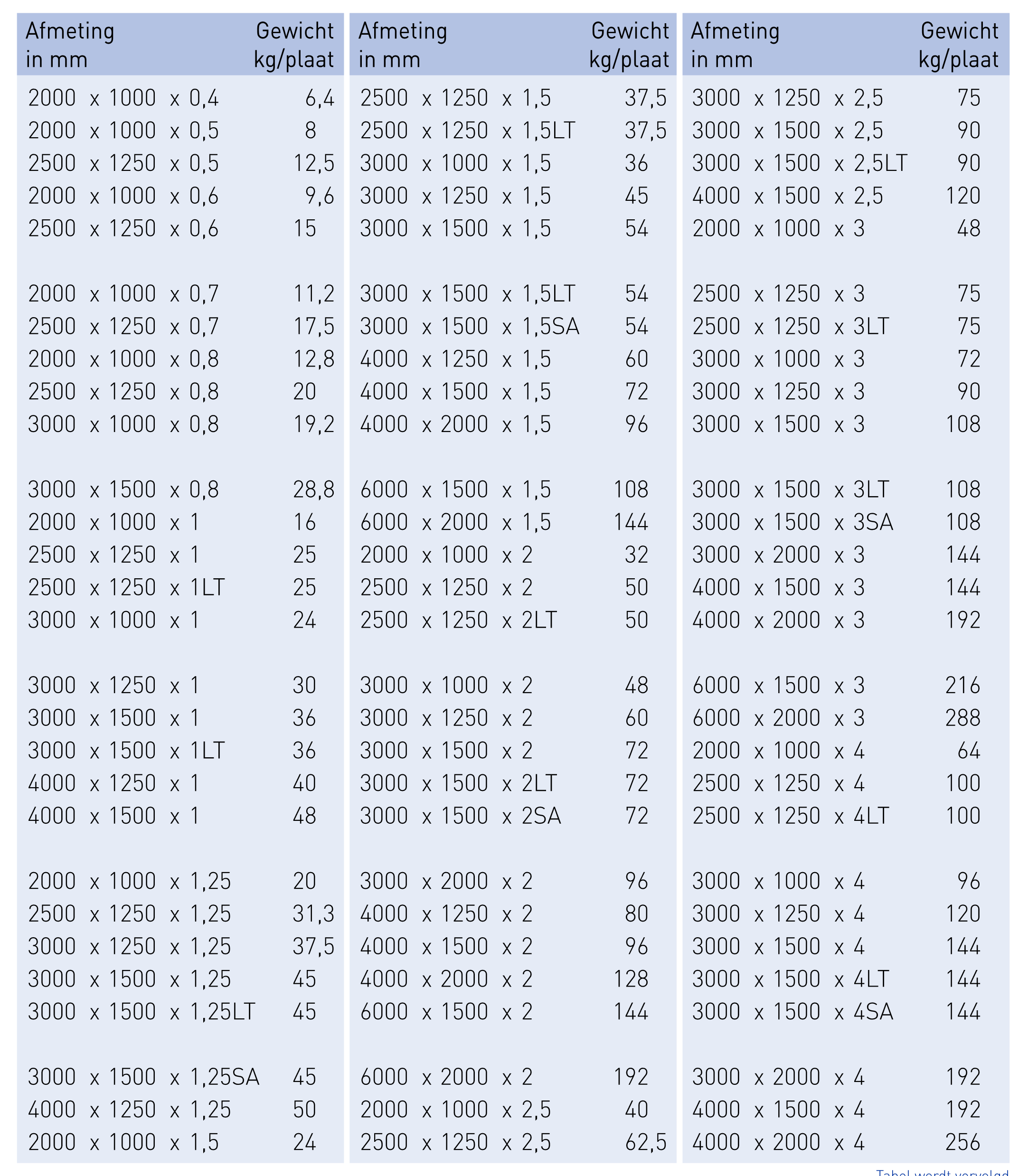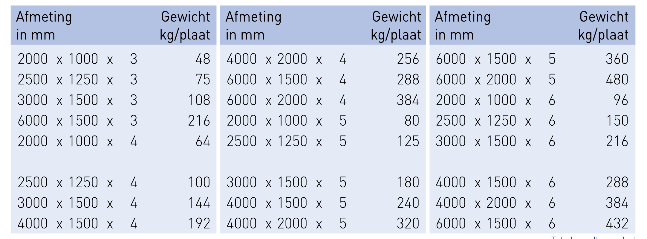- In bijna alle gevallen zijn de platen tevens gecertificeerd als 1.4307.