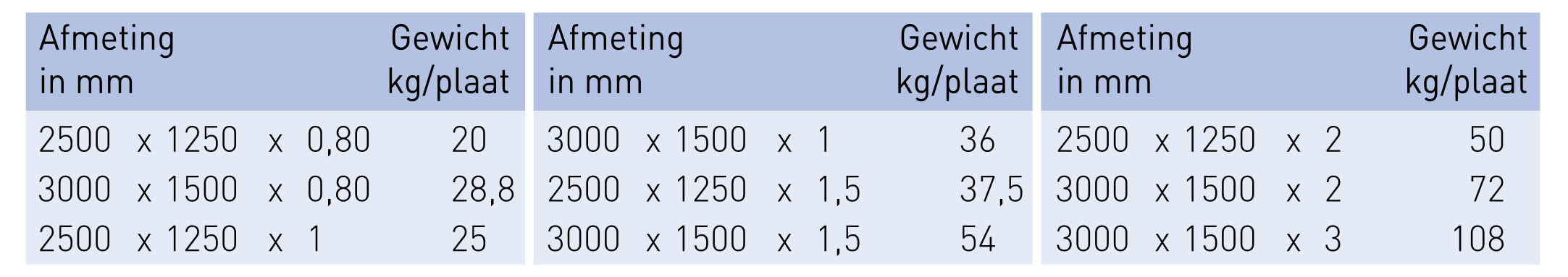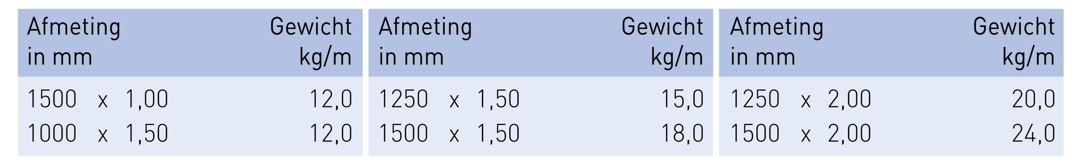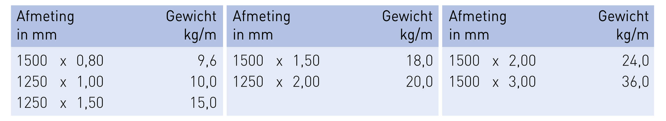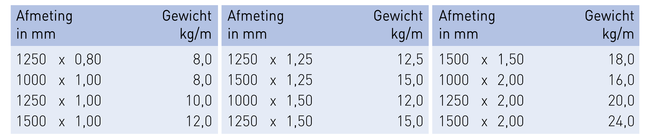 - – Platen – Af te rollen op gewenste lengte 400 – 6000 mm
