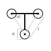 H = Hartafstand van de gaten in mm