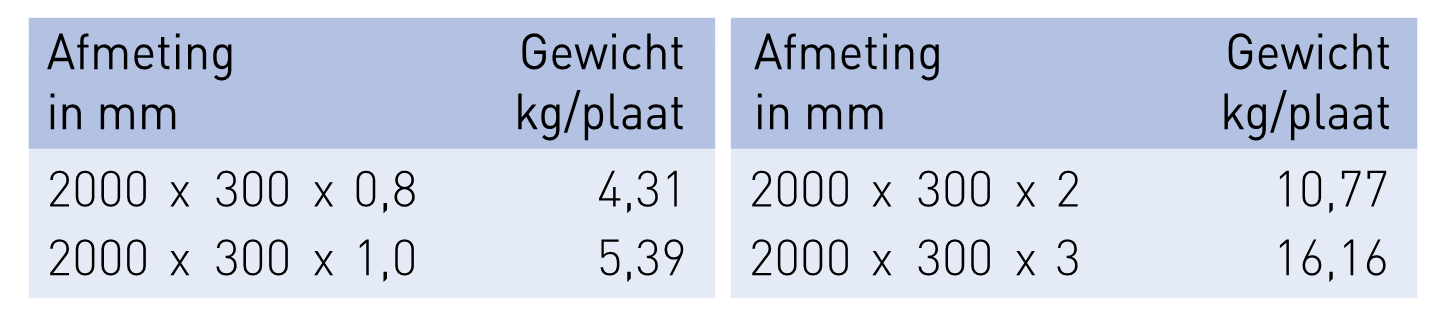 Gebruikelijke voorraadsafmetingen. Andere afmetingen en/of kwaliteiten op aanvraag.