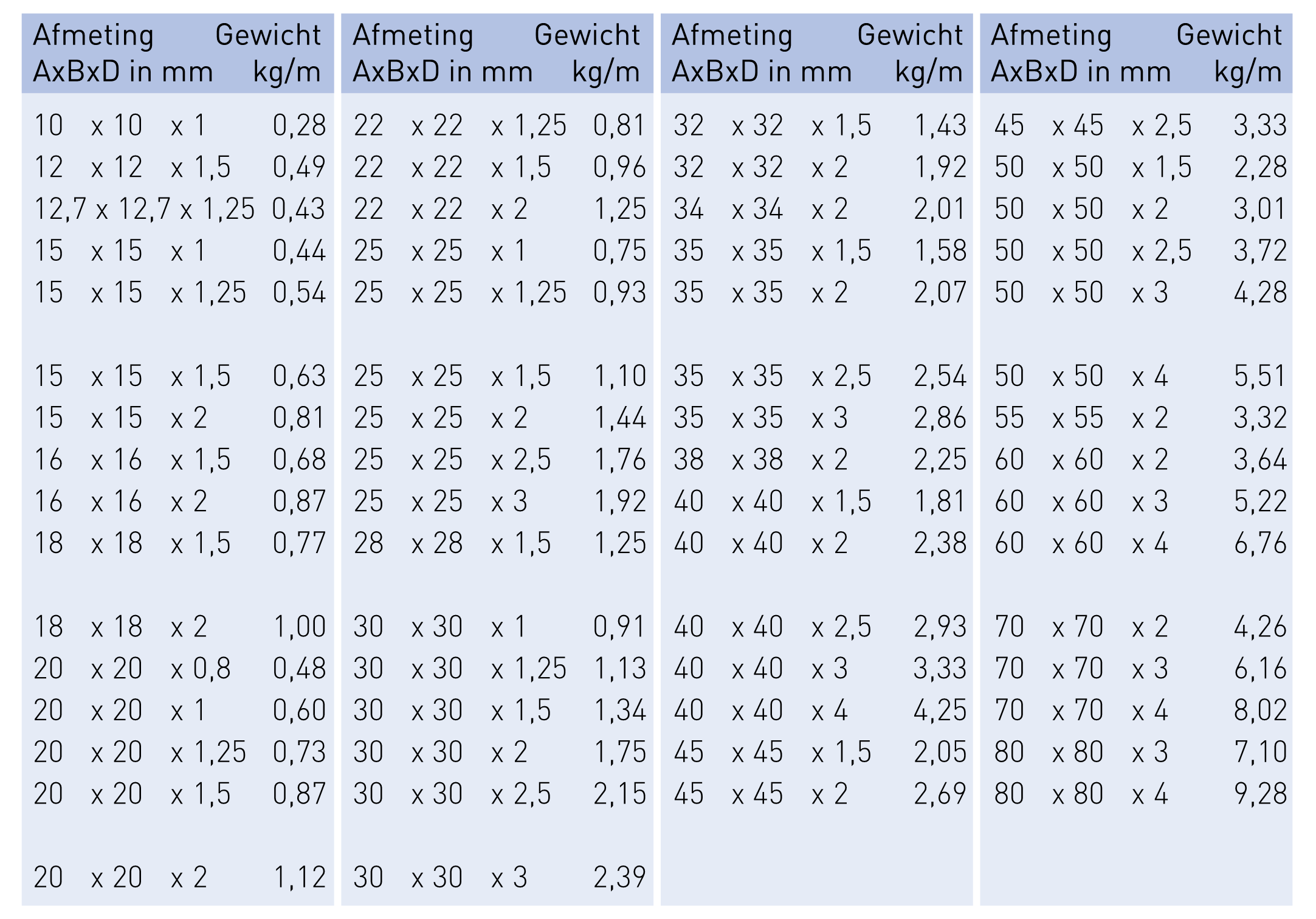 - Kwaliteit tot dikte 1,5 mm: E220 + CR2S3 en/of E235 + CR2S3.