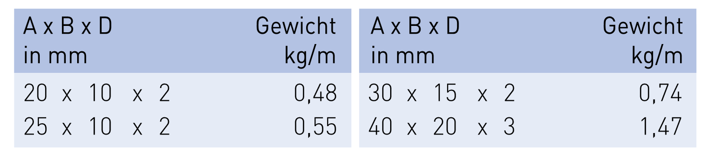- De mechanische eigenschappen van profielen zijn afhankelijk van de vorm en de afmetingen en moeten bij de bestelling overeen worden gekomen.