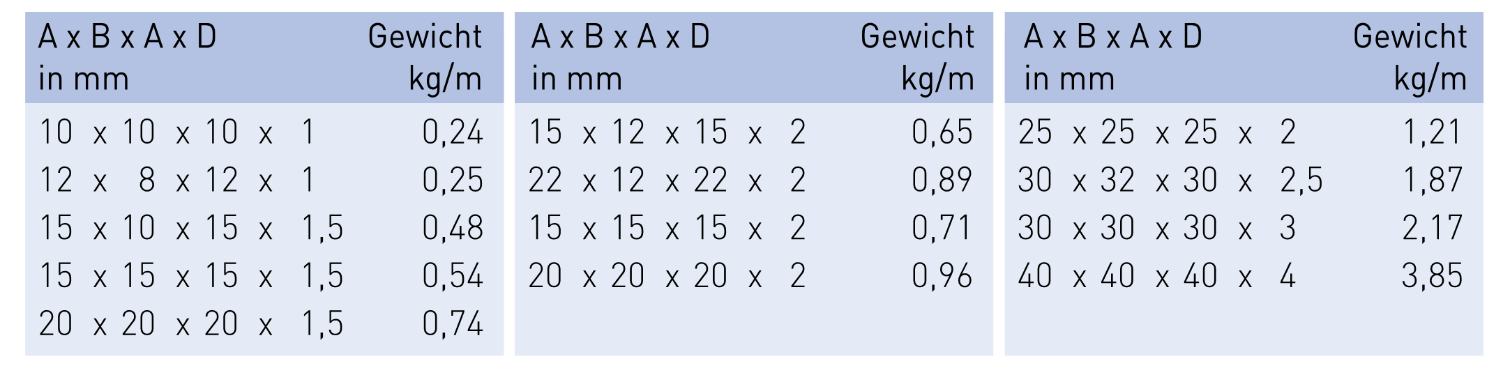 Gebruikelijke voorraadsafmetingen. Andere afmetingen en/of kwaliteiten op aanvraag. Hoekprofielen dikte 4 mm op aanvraag.