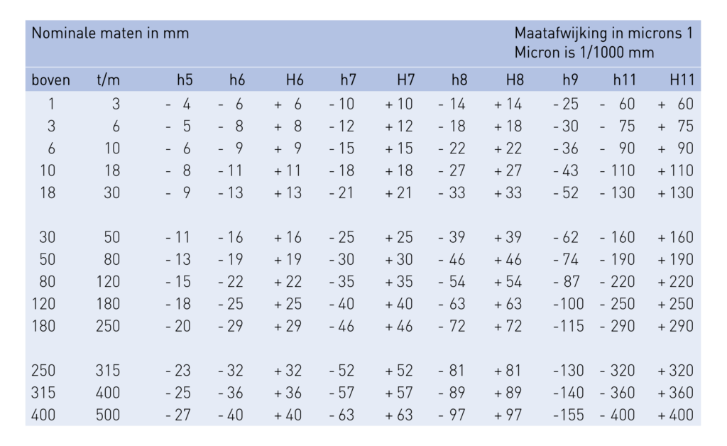 De toleranties op de nominale maat van assen en gaten zijn onder andere vastgelegd in het veel toegepaste ISO passingstelsel. De aanduiding van de tolerantie volgens dit stelsel bestaat uit: de nominale waarde, een letter en een cijfer. De letter geeft de ligging van het tolerantiegebied aan. Voor assen wordt een kleine letter gebruikt, voor gaten een hoofdletter. De grootte van het tolerantiegebied wordt gegeven door het cijfer in combinatie met de nominale maat. Veel halffabrikaten, zoals bijvoorbeeld blank stafstaal, worden geleverd met een tolerantiegebied tussen nul (= nominale maat) en een negatieve waarde. De gebruikte letter voor deze ligging van het tolerantiegebied is “h”. De bijbehorende gattoleranties worden met de letter “H” aangegeven. Het tolerantiegebied ligt dan tussen nul en een positieve waarde.