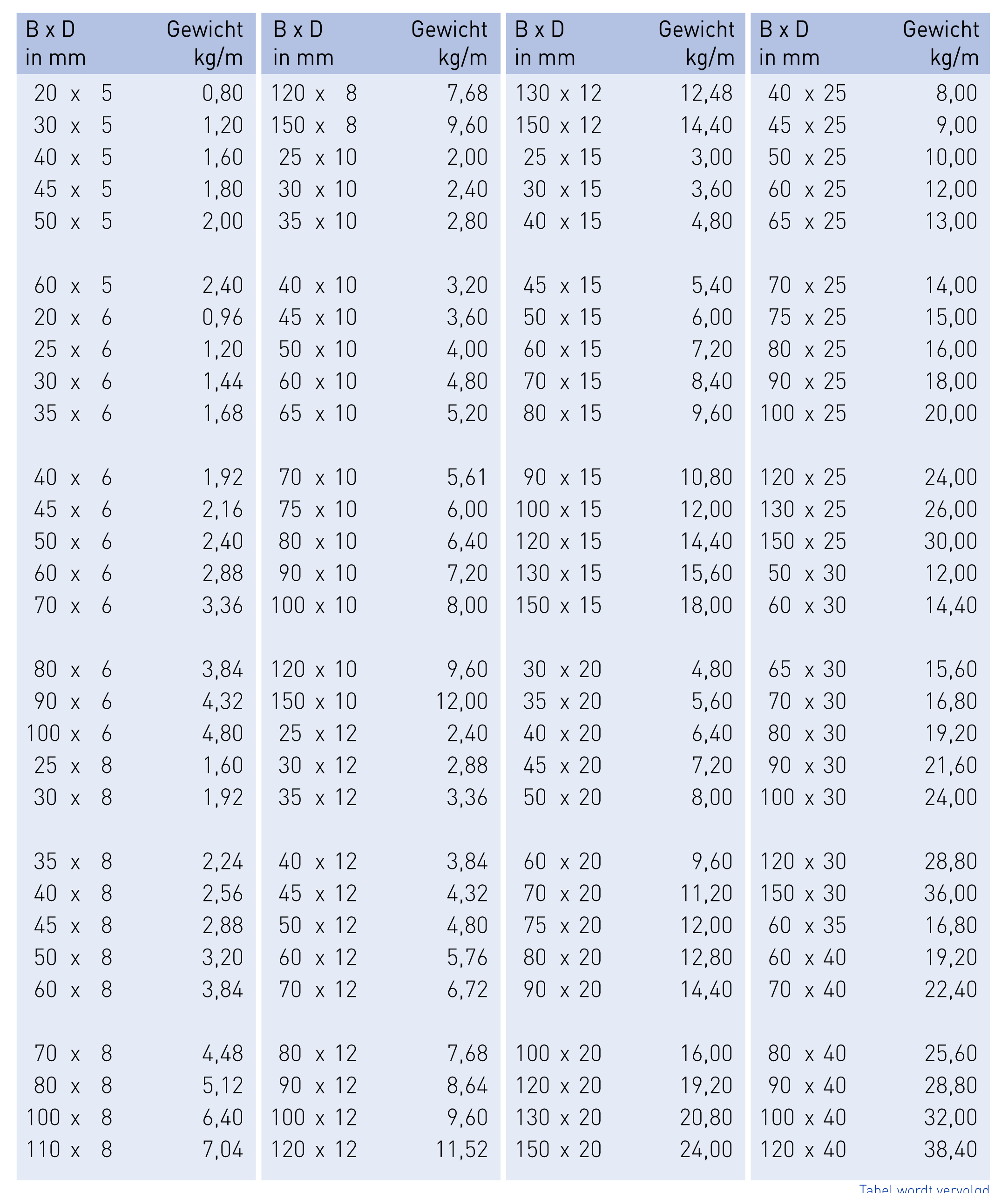 Gebruikelijke voorraadsafmetingen. Andere afmetingen en/of kwaliteiten op aanvraag